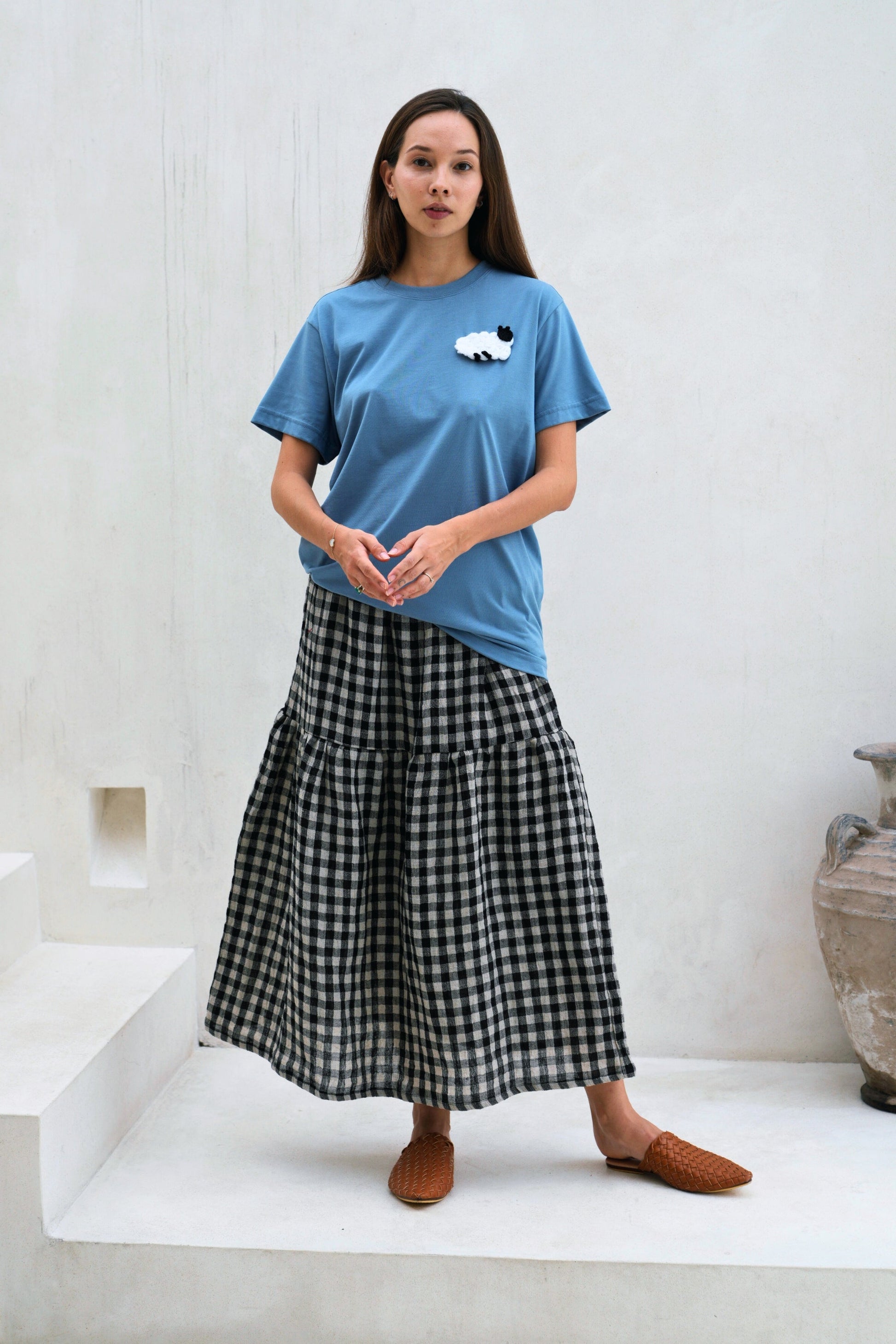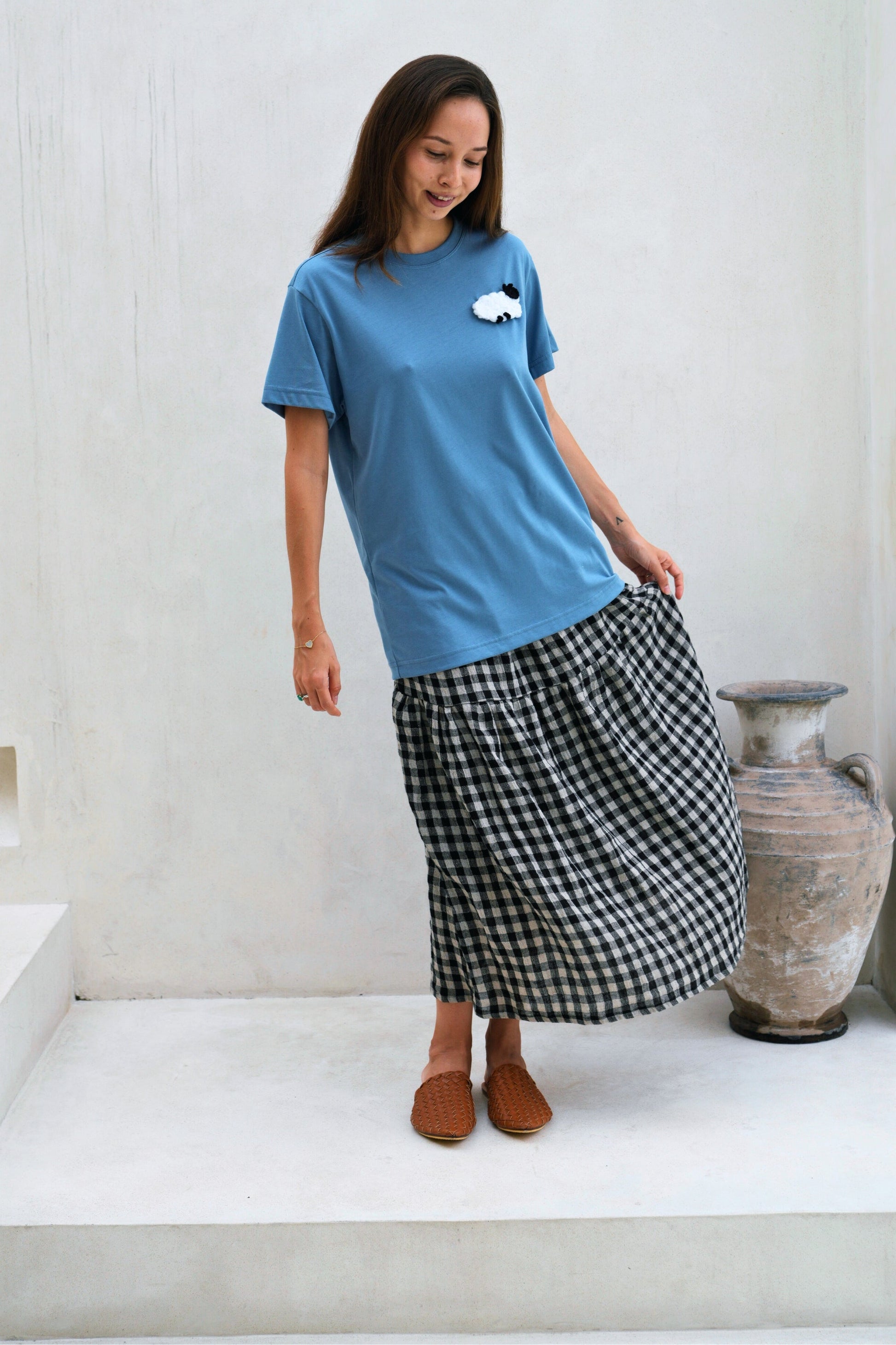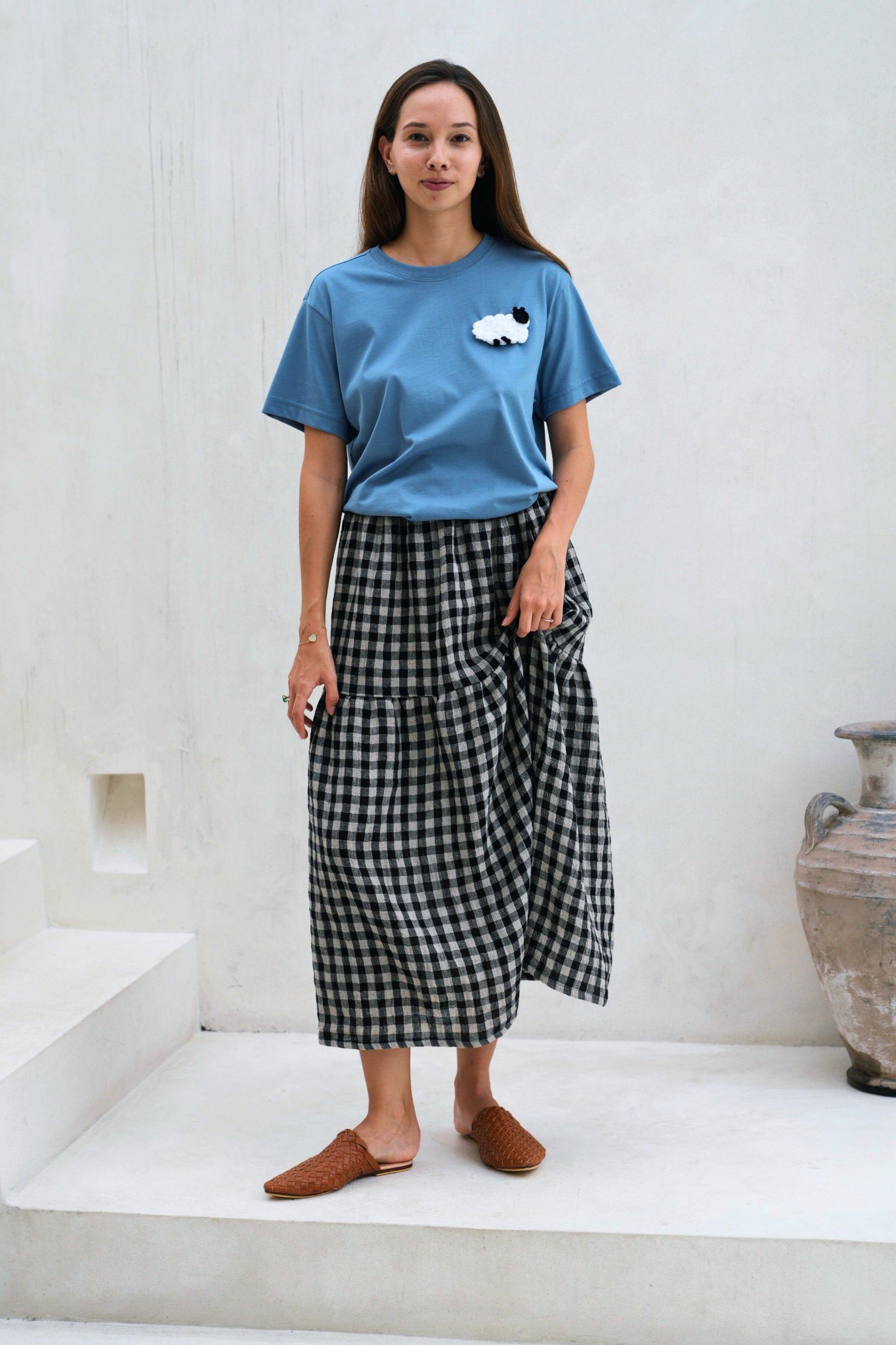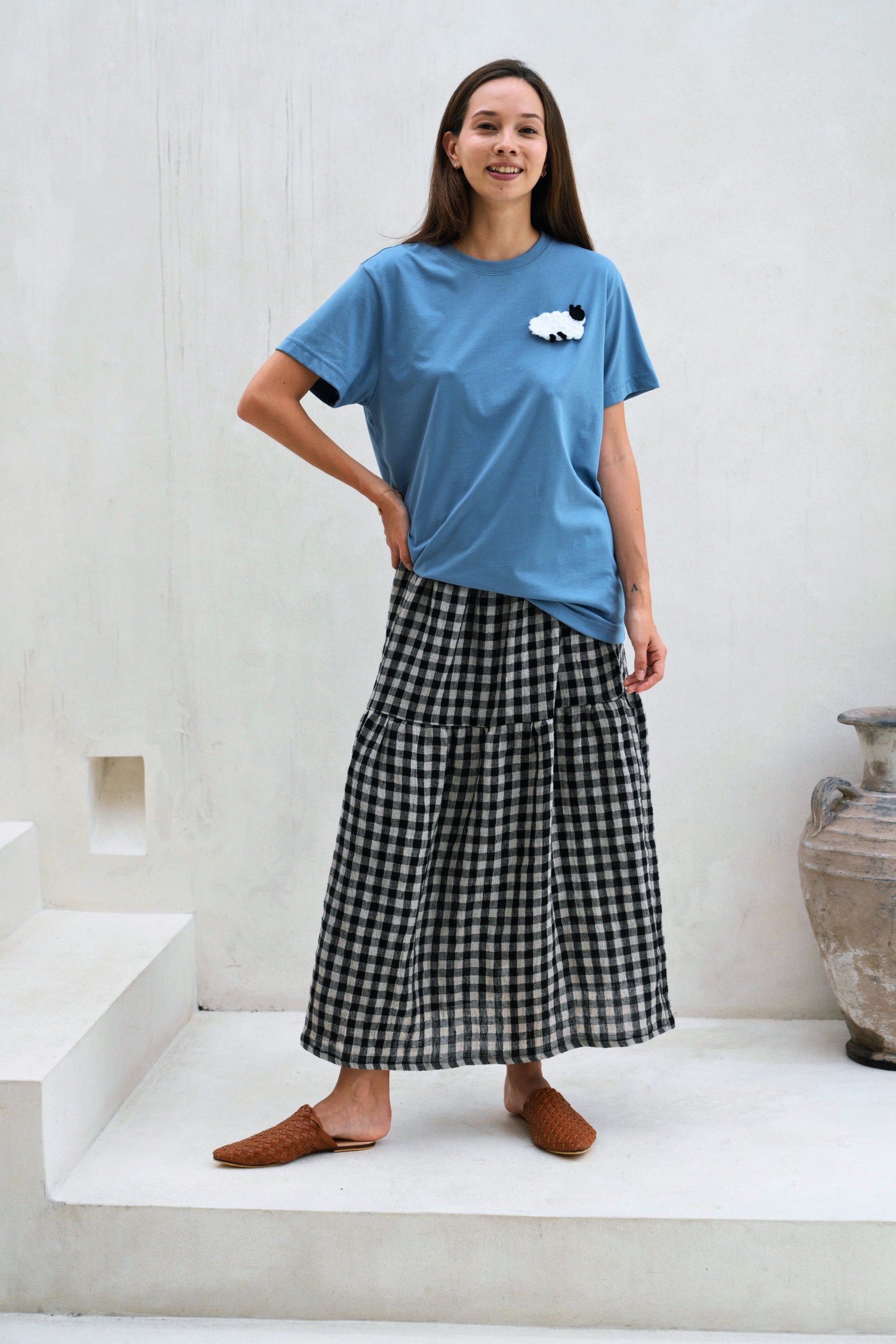 Show off your lively, outspoken side in this lovely soft SUPIMA cotton and boldly hand embellished sheep crochet fabrication for an added special touch on a crewneck T-shirt.