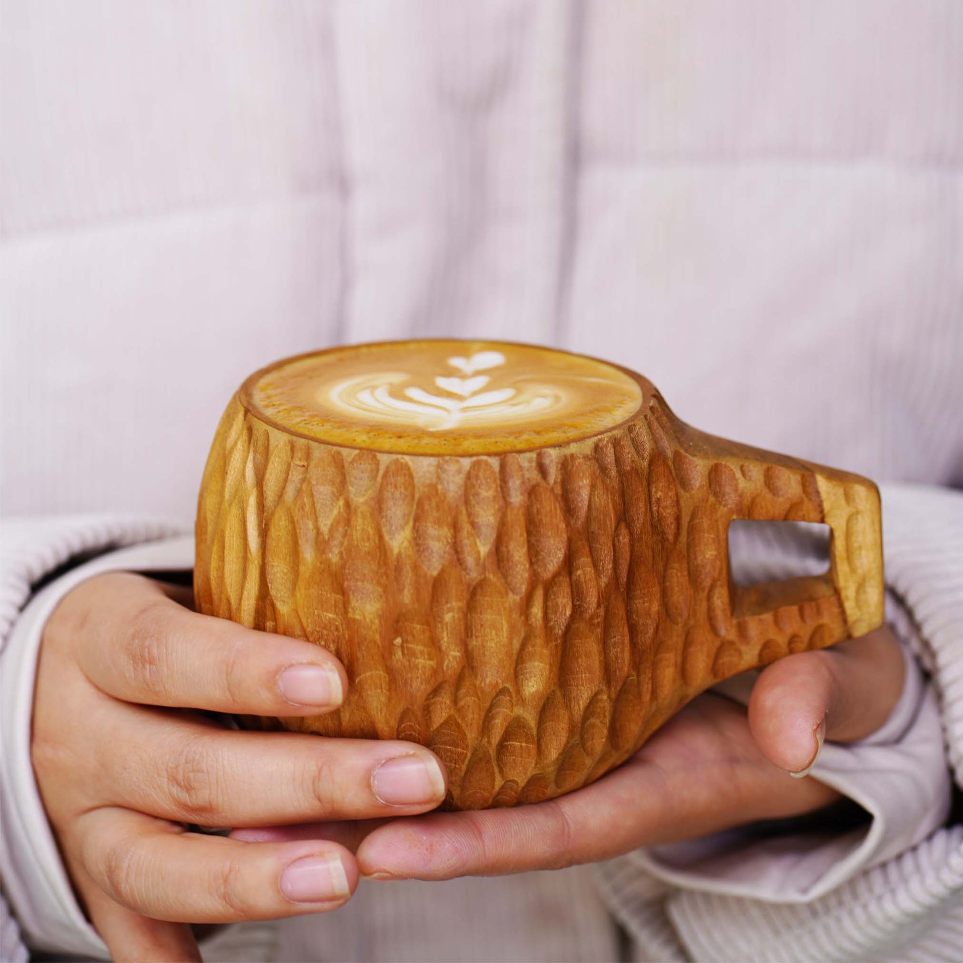 This is a FINAL SALE with NO RETURN, EXCHANGE or REFUND. This is a wood cup that is handmade by artisans in Jogjakata, Java, Indonesia. The wood is first kiln dried to reducs the moisture content of wood before its use. The artisans then handmade the wood to end products by shaping it to form the bowl. The bowl is then finished and polished with beeswax to protect the woods. This treatment is food safe. You can use this cup wood to serve drink Because each board is handmade, there will be some variations in color, shape and size. Each board will exhibit its own characteristics, varying slightly in color, shape and size. Size: 4.7" x 3" x 2.8"