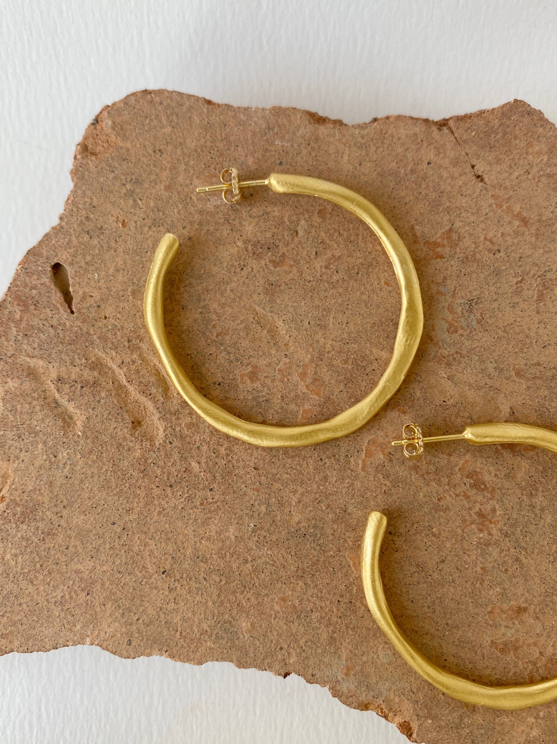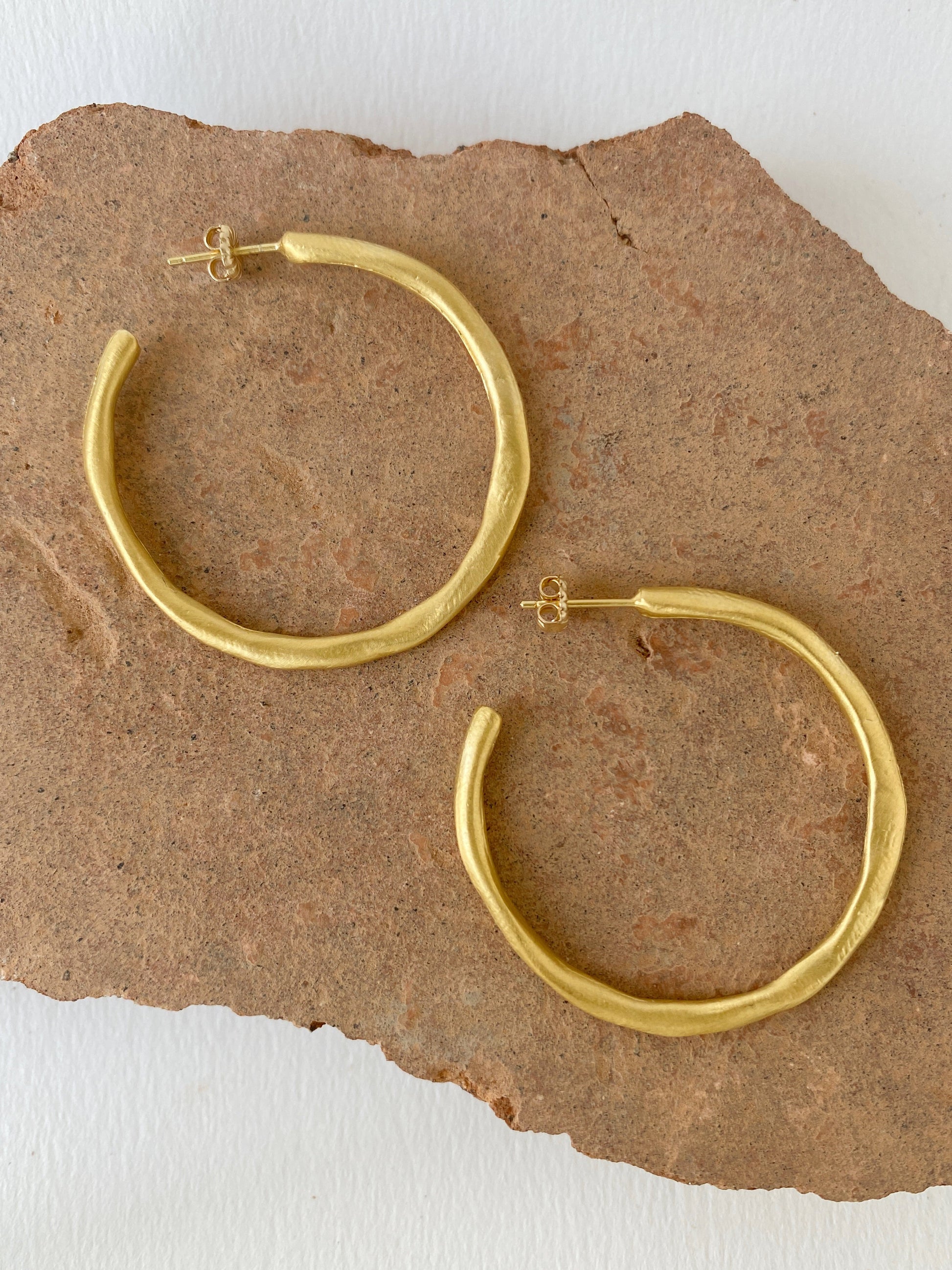 Hand formed hoop earrings. Classic, but unique (maker's finger prints included!). One of our best selling designs.