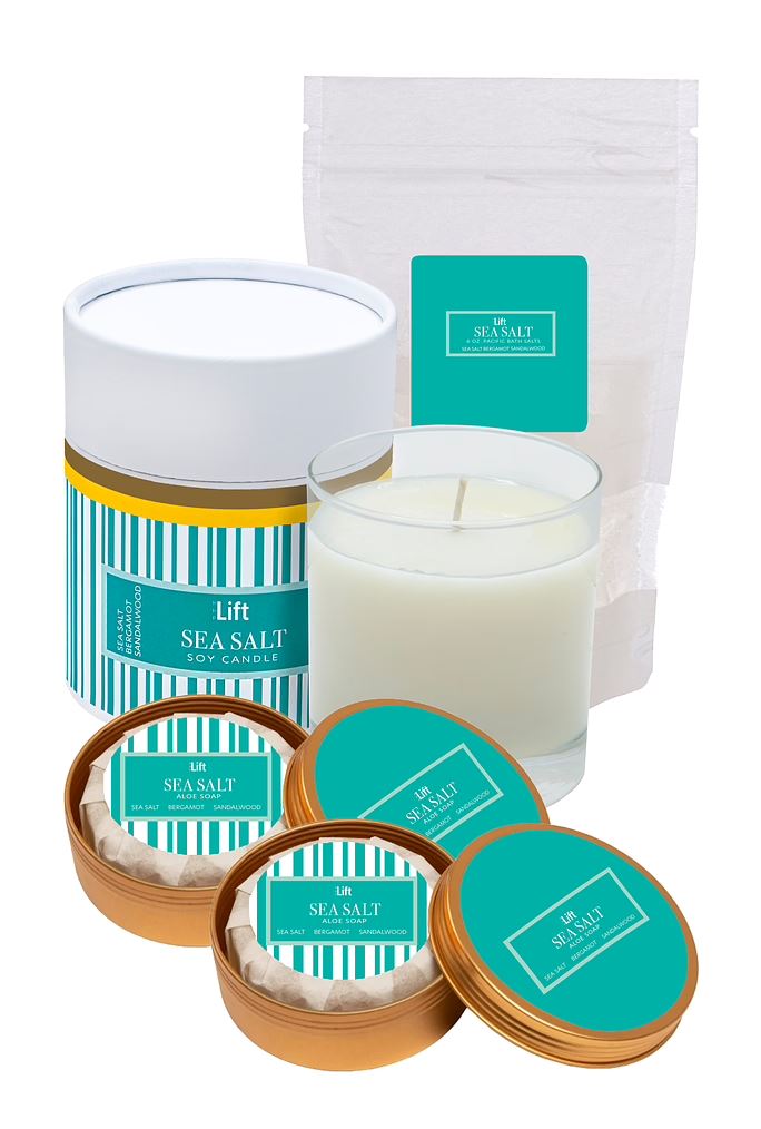 Enjoy the R&R of your dreams. One 8.5 oz. soy candle inside, two aloe glycerin soaps in tins, and one 6 oz. bag of soaking salts. Sustainably handmade by LiftWorks™ Program associates.