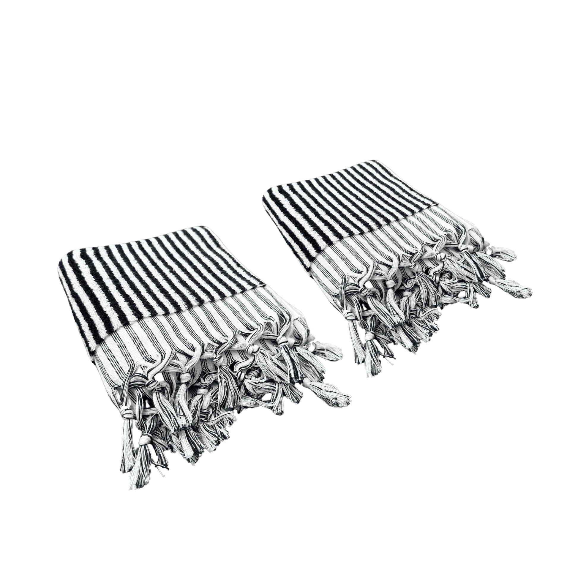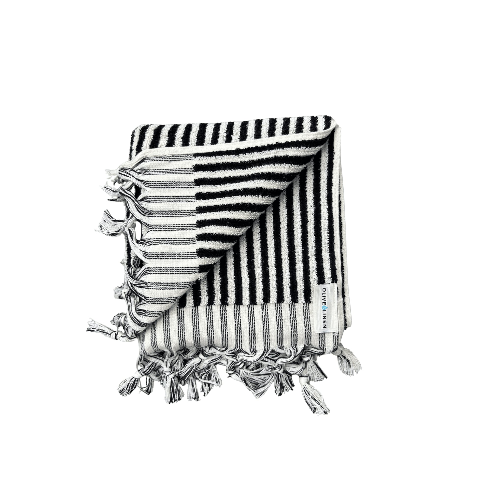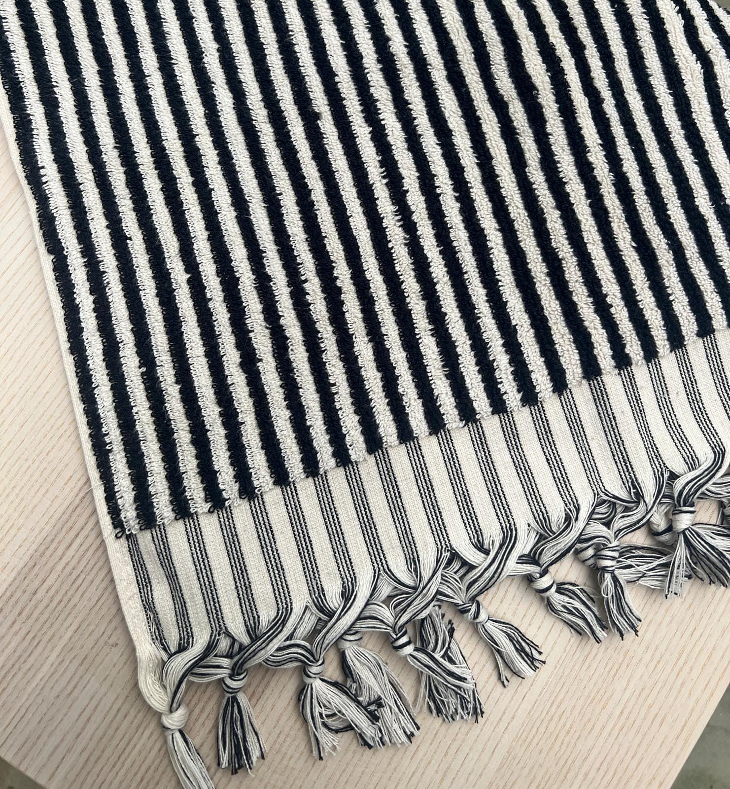 Meet the latest addition to our hand towel collection! The Striped Hand Towel is perfect for those who prefer their towels thicker. Still hand loomed from 100% Premium Turkish Cotton, it features an elegant pattern of stripes in beautiful colors. It is luxuriously soft, ultra-plush, and extremely absorbent. _____________________________________________________________ Materials: 100% Premium Turkish Cotton Size: 18"x36" Weight: 248g/8.7oz Care: Machine wash cold or up to 30℃ in gentle cycle. Avoid fabric softeners, dryer sheets , bleach and oxygen based bleach. Do not leave wet in the washing machine. Lay flat to dry or move to the drier as soon as wash cycle is finished. Air Dry or Tumble Dry low heat in gentle cycle. We recommend Air Dry as Turkish towels air dry quickly, so you may hang them to dry. Our Turkish towels are woven from all natural cotton. They may shed some initially since there is no chemical coating on them. This will stop after a few more washes, but you can try adding a cup of white vinegar and half a cup of baking soda dissolved in warm water to your next few wash cycles and tumble drying on low to speed up this process. Avoid contact with household cleaners, whitening toothpastes and skin care products containing benzoyl peroxide. Handcrafted by Olive and Linen ______________________________________________________________