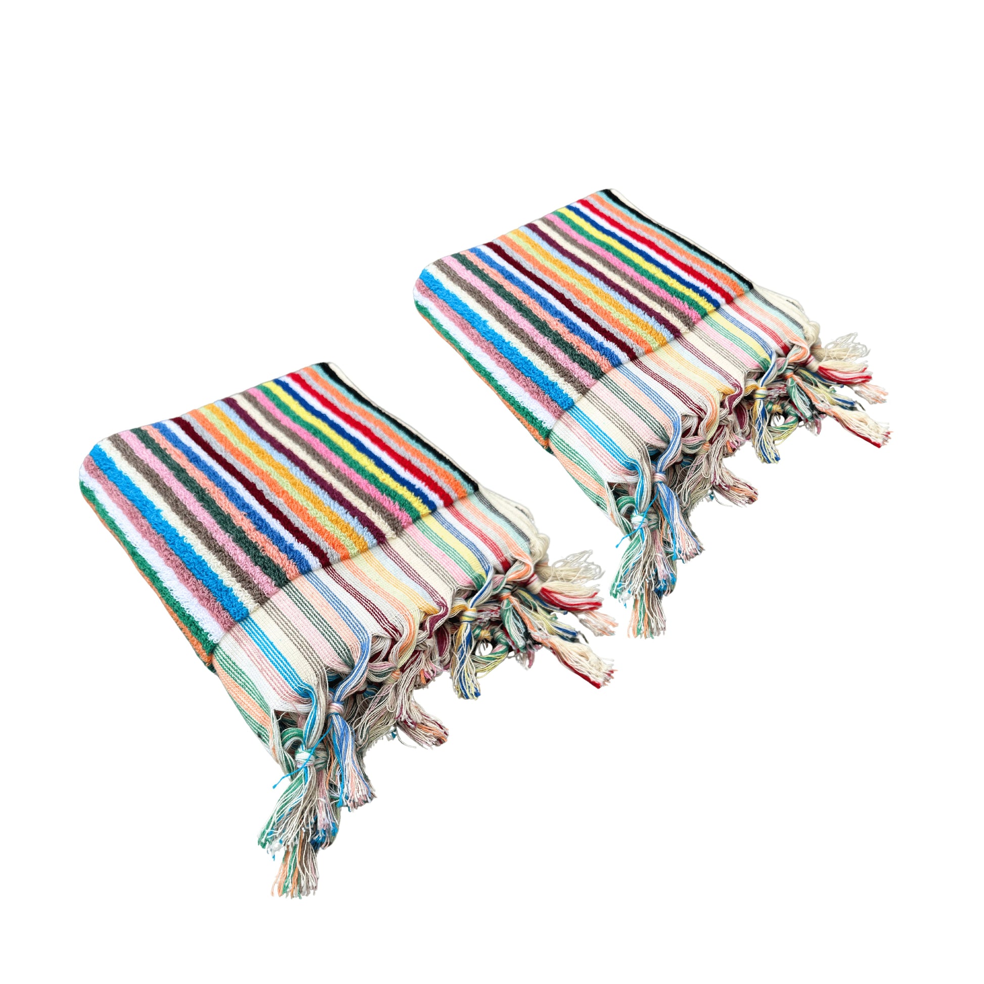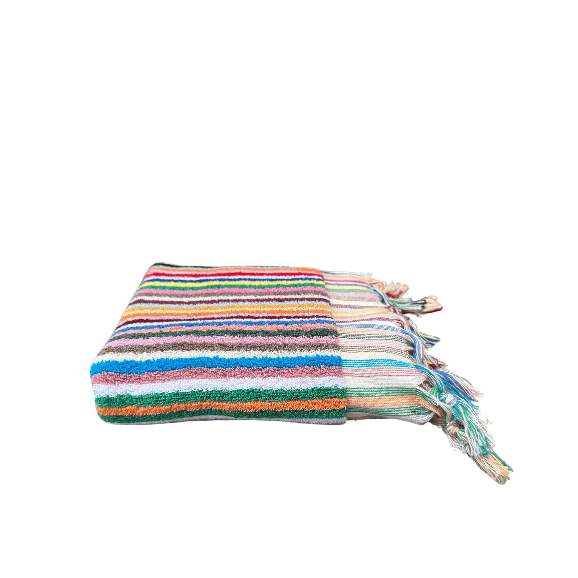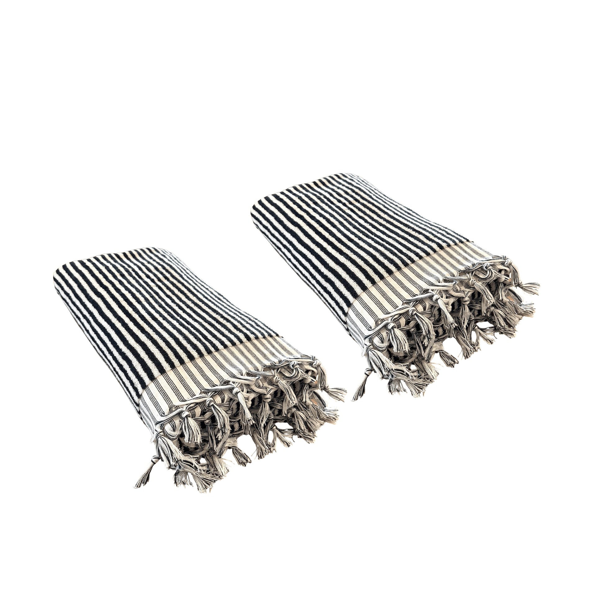 Meet the latest addition to our hand towel collection! The Striped Hand Towel is perfect for those who prefer their towels thicker. Still hand loomed from 100% Premium Turkish Cotton, it features an elegant pattern of stripes in beautiful colors. It is luxuriously soft, ultra-plush, and extremely absorbent. _____________________________________________________________ Materials: 100% Premium Turkish Cotton Size: 18"x36" Weight: 248g/8.7oz Care: Machine wash cold or up to 30℃ in gentle cycle. Avoid fabric softeners, dryer sheets , bleach and oxygen based bleach. Do not leave wet in the washing machine. Lay flat to dry or move to the drier as soon as wash cycle is finished. Air Dry or Tumble Dry low heat in gentle cycle. We recommend Air Dry as Turkish towels air dry quickly, so you may hang them to dry. Our Turkish towels are woven from all natural cotton. They may shed some initially since there is no chemical coating on them. This will stop after a few more washes, but you can try adding a cup of white vinegar and half a cup of baking soda dissolved in warm water to your next few wash cycles and tumble drying on low to speed up this process. Avoid contact with household cleaners, whitening toothpastes and skin care products containing benzoyl peroxide. Handcrafted by Olive and Linen ______________________________________________________________