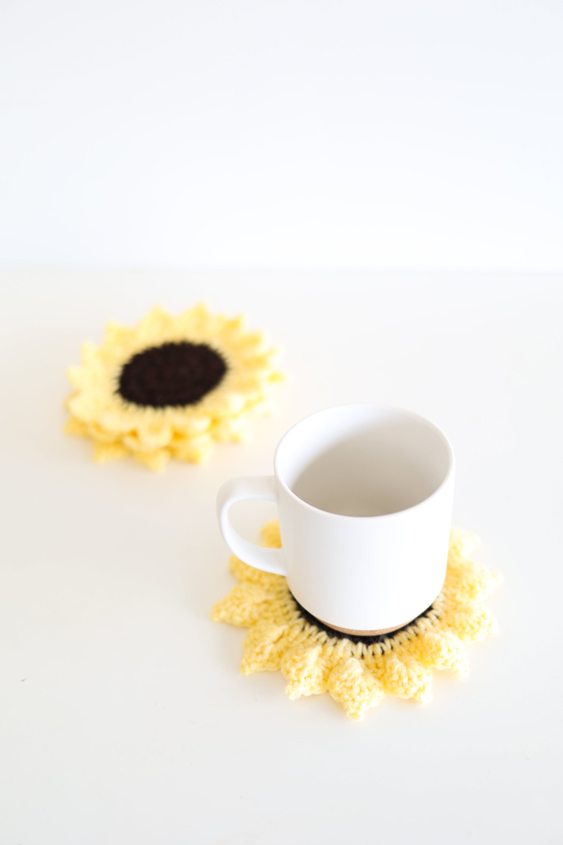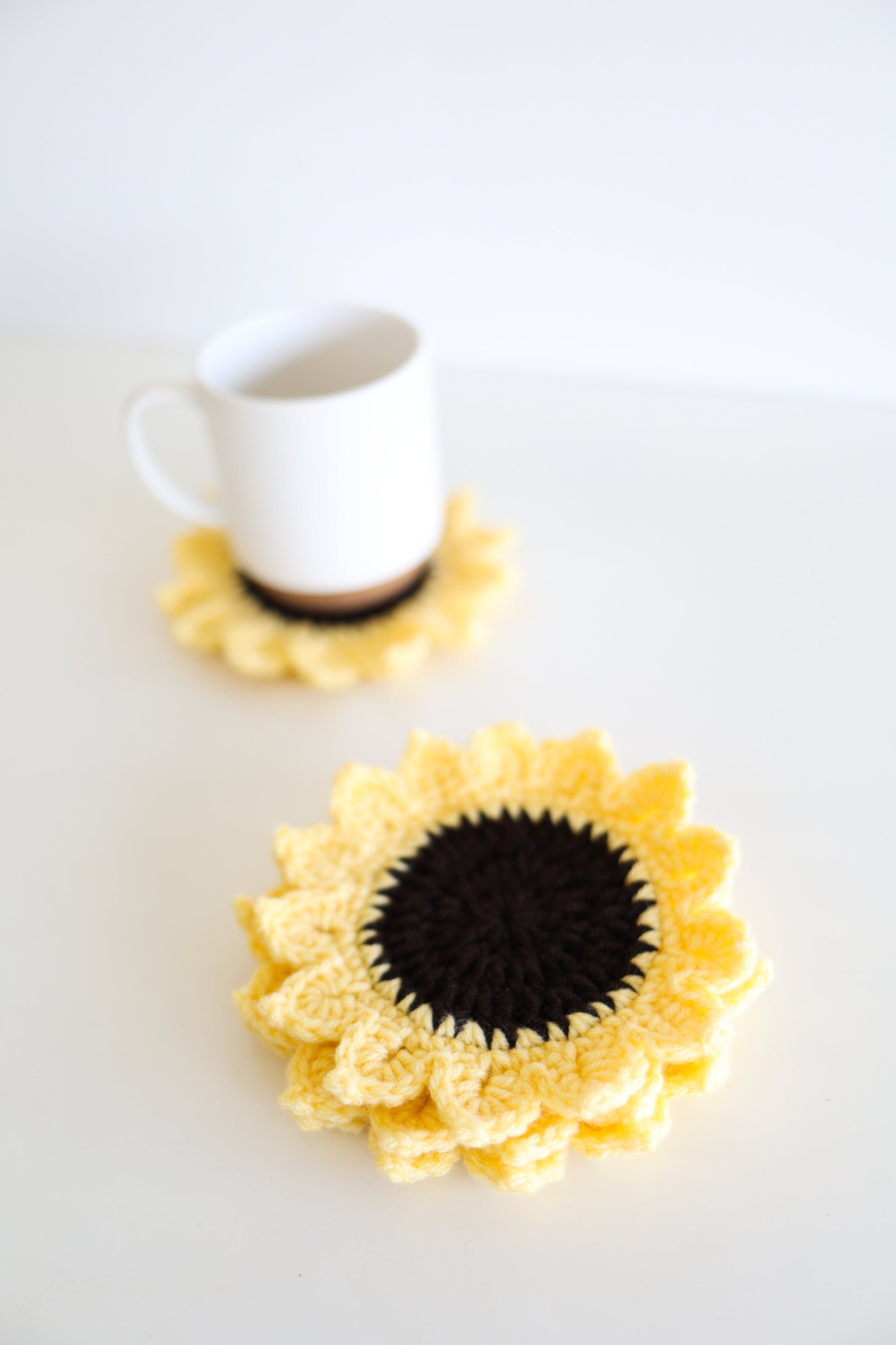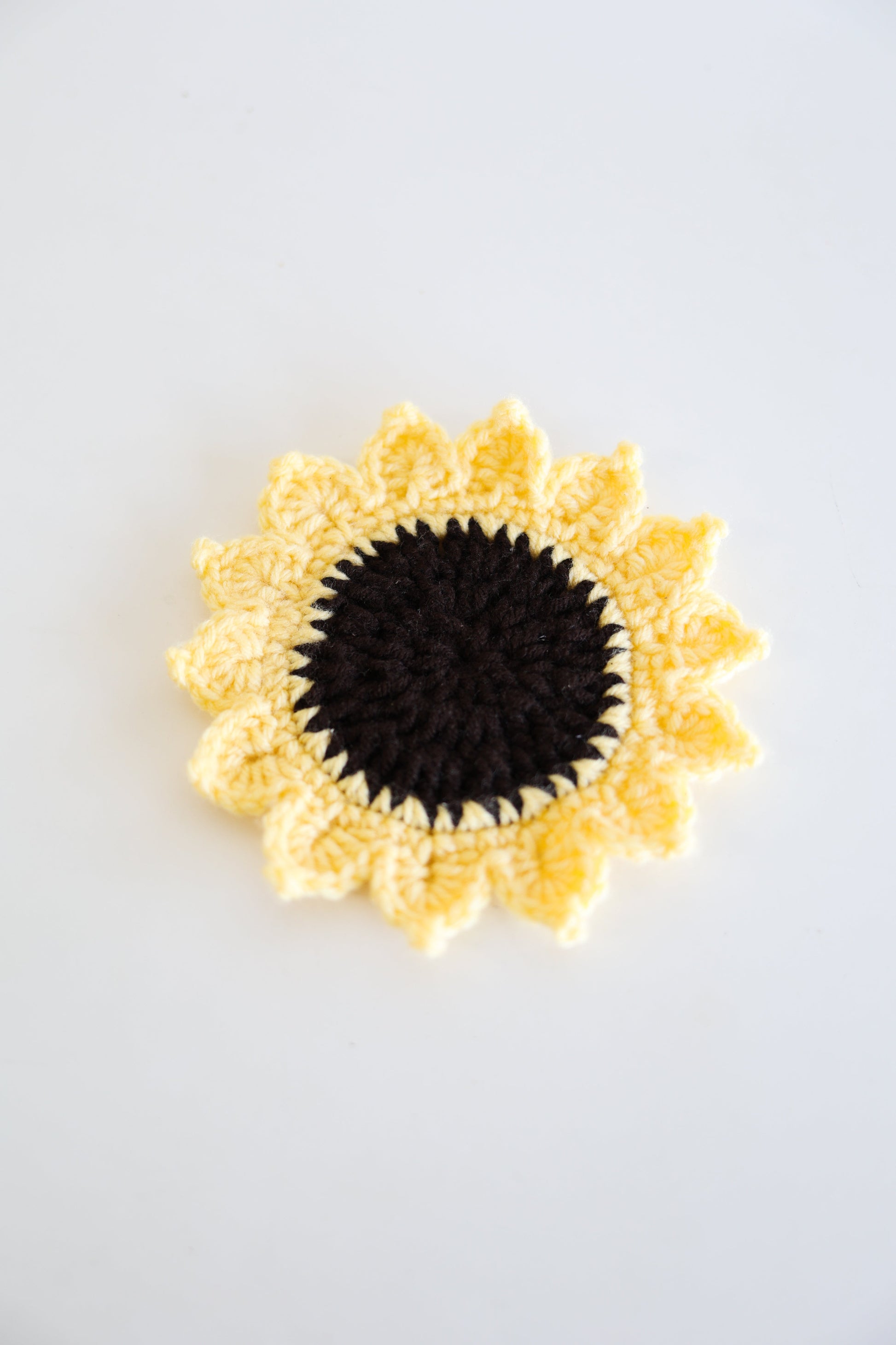 This cute set of four sunflower coasters is sure to brighten up any space in your home! These are a soft yellow acrylic yarn with brown center, tied together with a ribbon. Handmade in the Dominican Republic, employing a girl aging out of a children's home.
