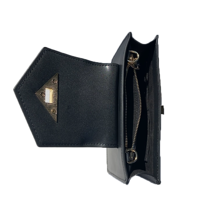 The Mary leopard purse is a modern, geometric take on the classic mini crossbody bag wristlet. With a boxy structure and a sturdy, angular flap, this bag’s put together look will serve as a boost to your confidence. With a vivid leopard print pattern broken up with a sleek triangle or luxury black leather, you are sure to feel stylish with the Mary on hand. A twist lock is placed sleekly within a statement piece of gold accent hardware to keep the flap in place. The sharp angles throughout the design of the bag contribute to its refined look. This leopard leather small crossbody bag wristlet is accompanied by a luxurious gold chain as well as a wrist strap so you can wear it multiple ways. The Mary is a simultaneously a crossbody and wristlet that is perfect for keeping all your essentials organized with one zipper pocket and 6 credit card slots. Its spacious interior fits even the largest smartphone models.