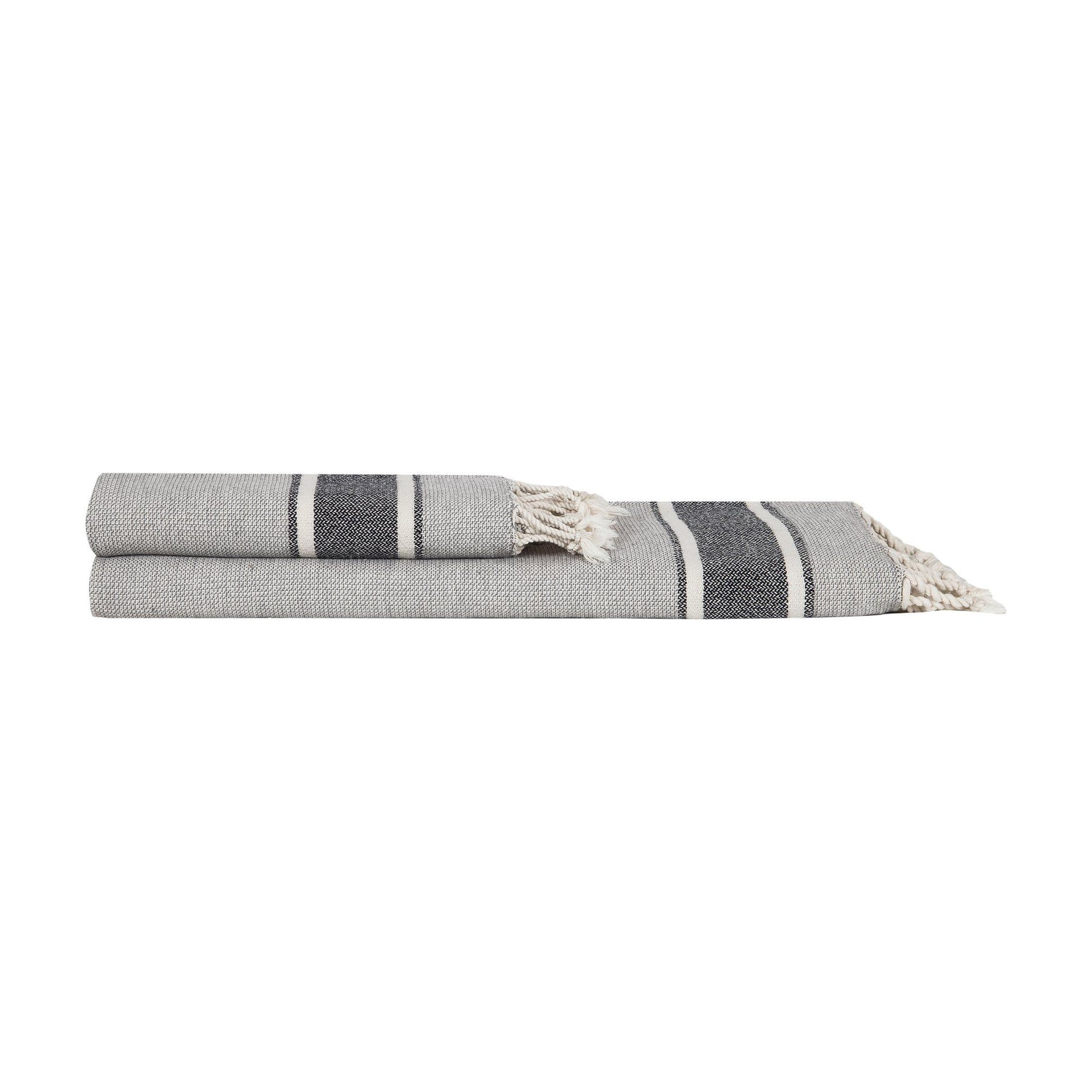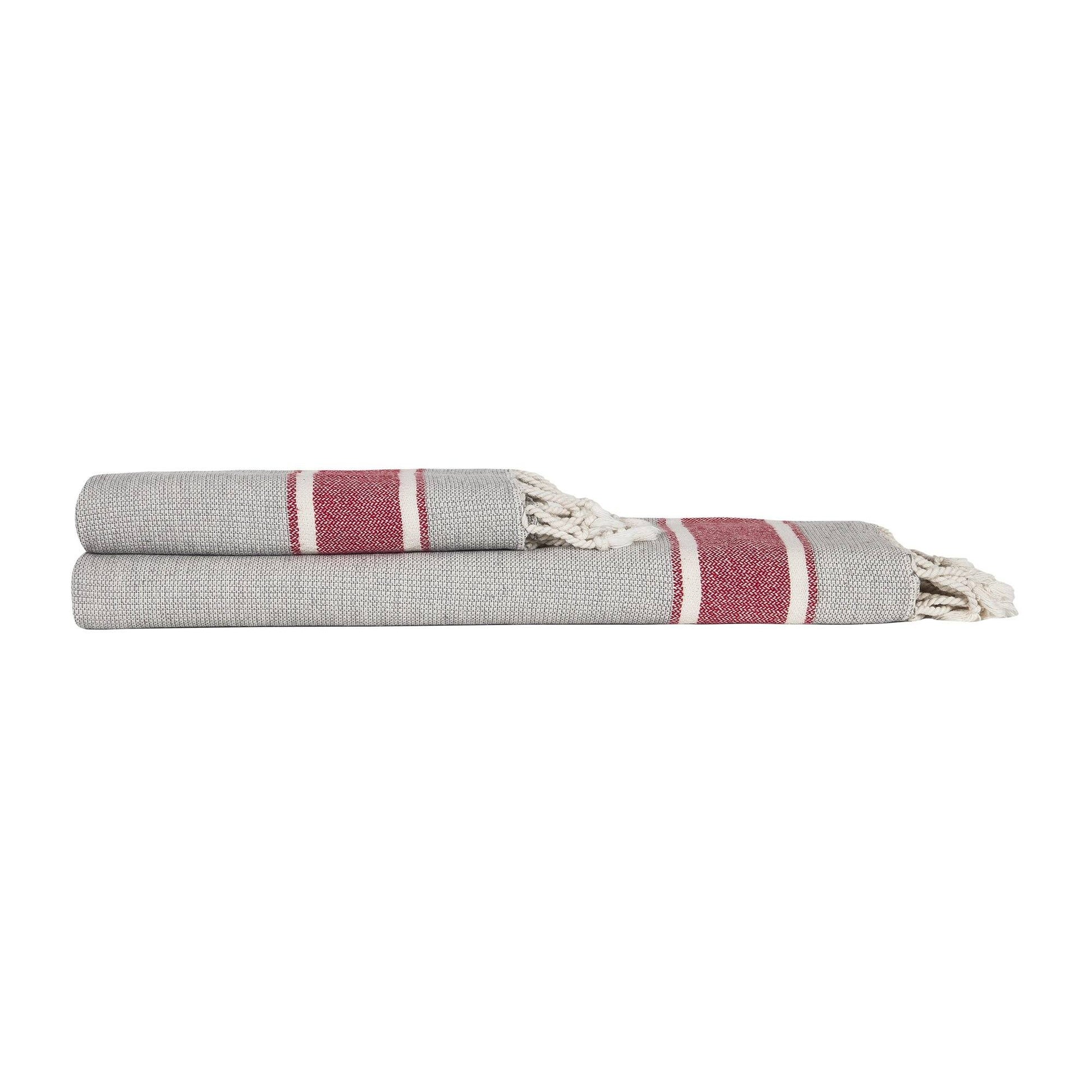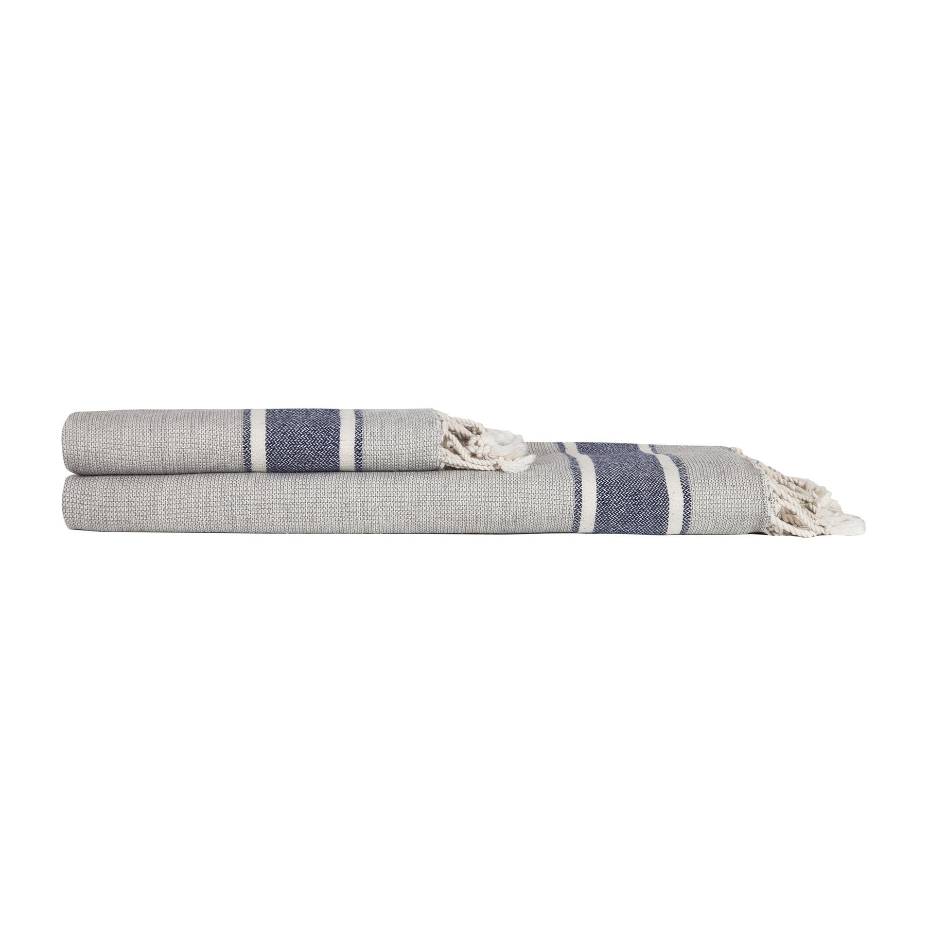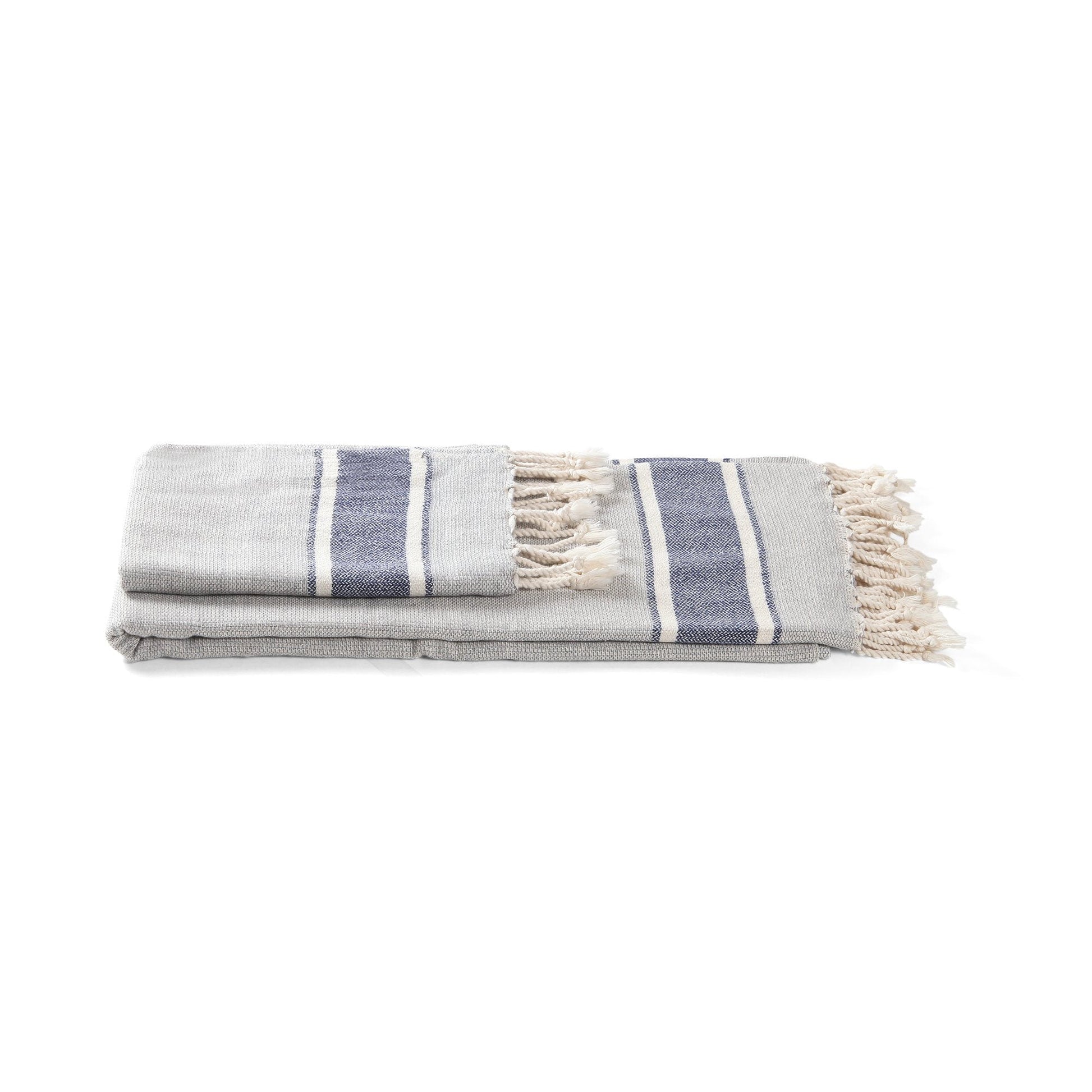 Our Terra Turkish Turkish Towel Set is hand-loomed from premium Turkish cotton. Beautiful and practical, these heirloom quality towels become softer and stronger overtime. Hand-loomed from the finest long-staple Turkish Cotton Combines gray background with subtle horizontal stripes Elegant yet super durable and functional Lightweight, soft, absorbent and quick drying Generously sized with standard Bath Sheet dimensions for added coverage Extremely versatile, works beautifully as a towel, throw, scarf, shawl or sarong The set includes one bath size and one hand size Terra Turkish towel in coordinating color packaged individually Finished with hand-knotted fringe OEKO-TEX® STANDARD 100 certified, IS025 168850 OETI Free of harmful chemicals and dyes – good for you and the environment Made in Turkey ______________________________________________ Materials: 100% Premium Turkish Cotton Size: 36"x77" and 20"x40" Weight: 345g/12.2oz and 92g/3.2oz Care: Machine wash cold or up to 30℃ in gentle cycle. Avoid fabric softeners, dryer sheets and bleach. Air Dry or Tumble Dry low heat in gentle cycle. We recommend Air Dry as Turkish towels air dry quickly, so you may hang them to dry. Fringes of Turkish Towels are handcrafted. They are very nice and durable but, sometimes may come untied. There is a simple process to fix untied fringes on a Turkish Towel. Learn how here⇒ How to Easily Fix Untied Fringes on Turkish Towels Handcrafted by Olive and Linen ______________________________________________