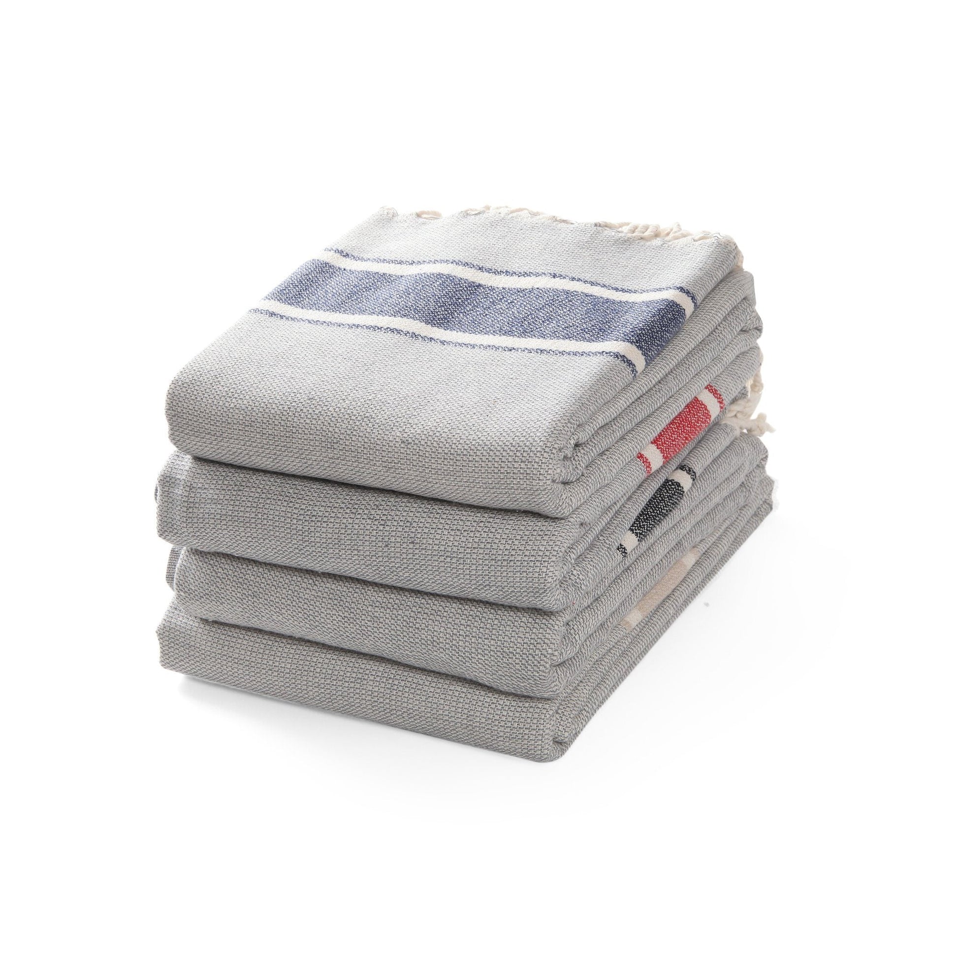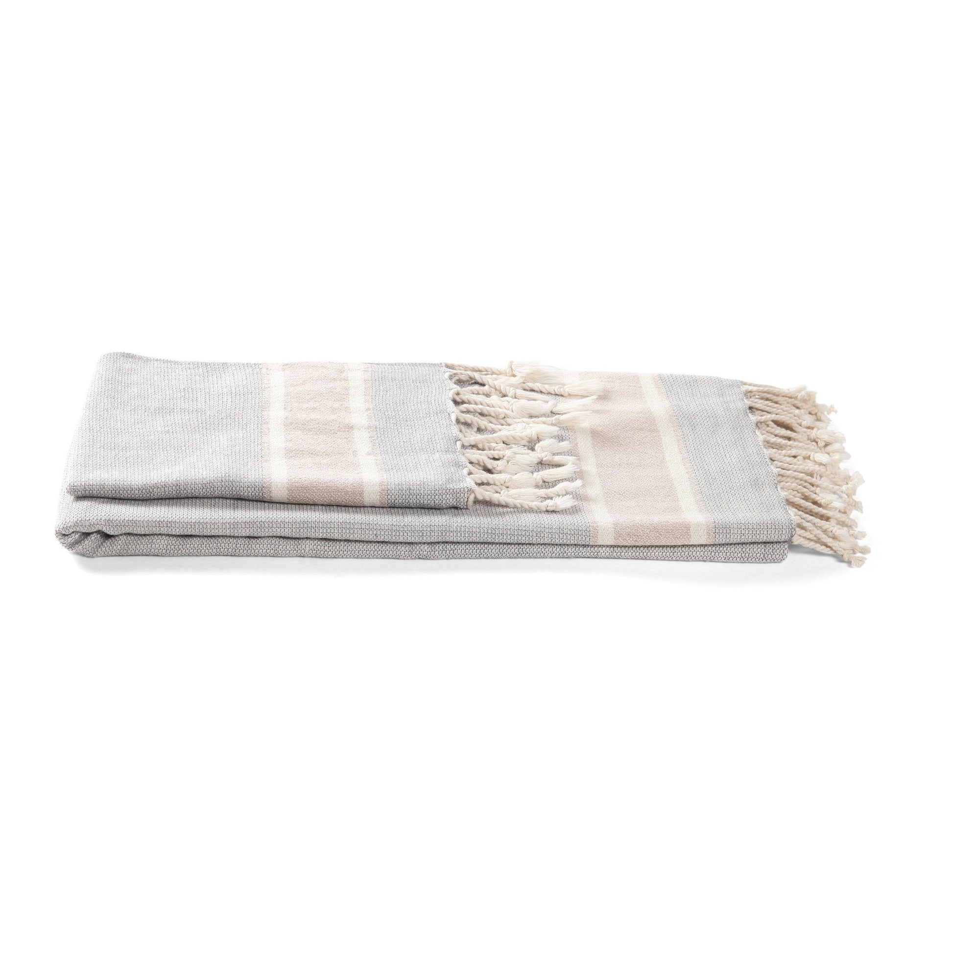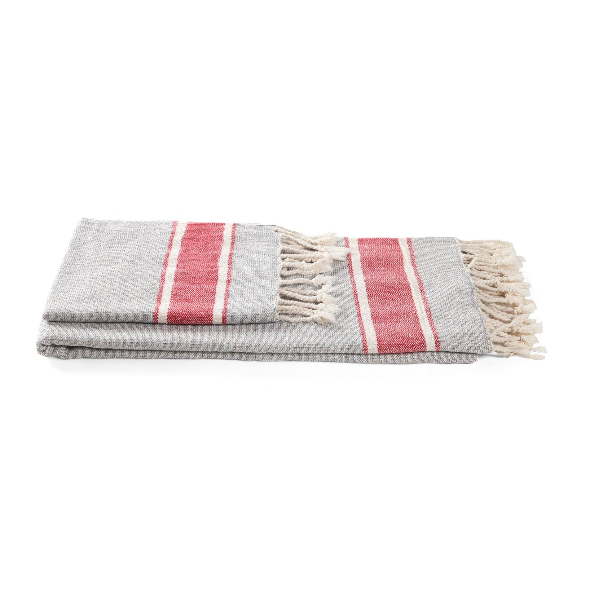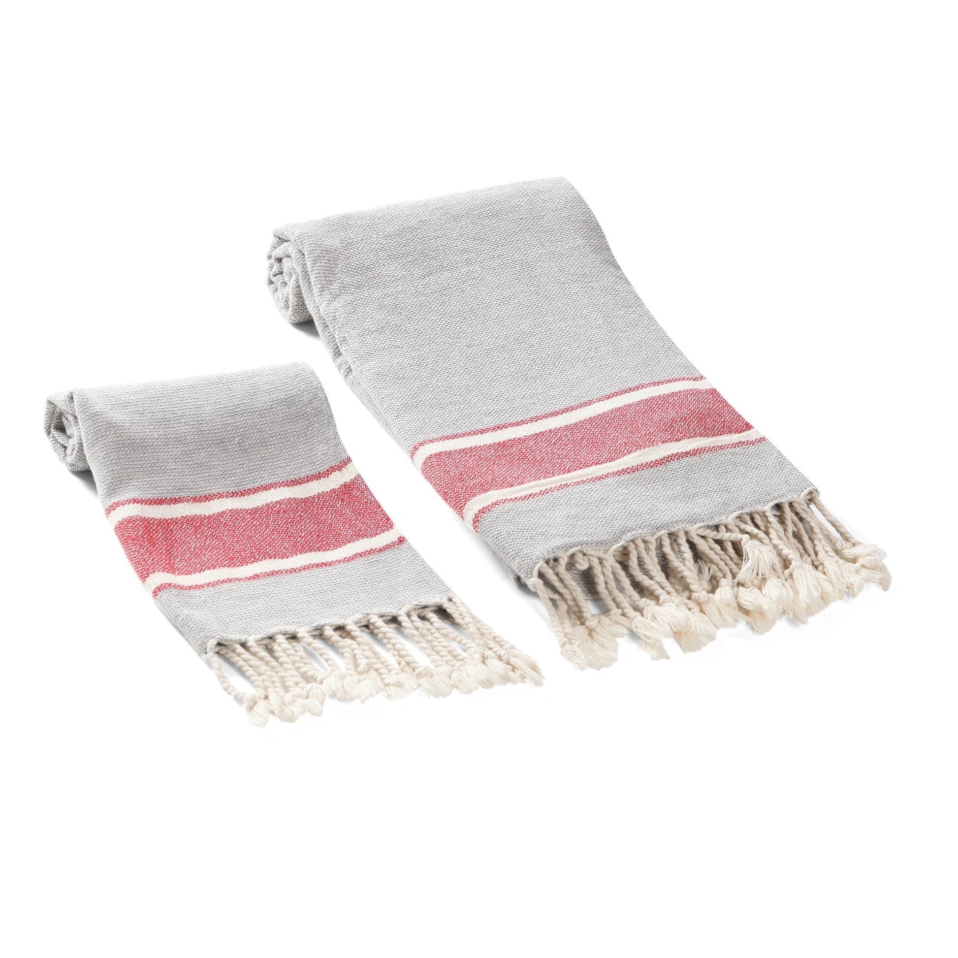 Our Terra Turkish Turkish Towel Set is hand-loomed from premium Turkish cotton. Beautiful and practical, these heirloom quality towels become softer and stronger overtime. Hand-loomed from the finest long-staple Turkish Cotton Combines gray background with subtle horizontal stripes Elegant yet super durable and functional Lightweight, soft, absorbent and quick drying Generously sized with standard Bath Sheet dimensions for added coverage Extremely versatile, works beautifully as a towel, throw, scarf, shawl or sarong The set includes one bath size and one hand size Terra Turkish towel in coordinating color packaged individually Finished with hand-knotted fringe OEKO-TEX® STANDARD 100 certified, IS025 168850 OETI Free of harmful chemicals and dyes – good for you and the environment Made in Turkey ______________________________________________ Materials: 100% Premium Turkish Cotton Size: 36"x77" and 20"x40" Weight: 345g/12.2oz and 92g/3.2oz Care: Machine wash cold or up to 30℃ in gentle cycle. Avoid fabric softeners, dryer sheets and bleach. Air Dry or Tumble Dry low heat in gentle cycle. We recommend Air Dry as Turkish towels air dry quickly, so you may hang them to dry. Fringes of Turkish Towels are handcrafted. They are very nice and durable but, sometimes may come untied. There is a simple process to fix untied fringes on a Turkish Towel. Learn how here⇒ How to Easily Fix Untied Fringes on Turkish Towels Handcrafted by Olive and Linen ______________________________________________