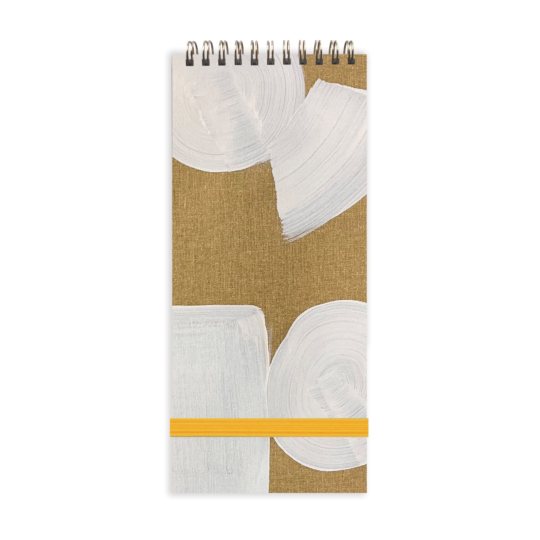 Hand-painted cloth cover with high quality wire binding. Both cover and back cover are hand painted, making each notebook completely one of a kind. Features - 120 pages with 103 gsm FSC certified paper. - Durable cover that is easy to wipe clean. - Elastic closure to keep your notes secure. - Handmade within our Iowa based studio. Size: 4 x 9" / 102 x 229 mm