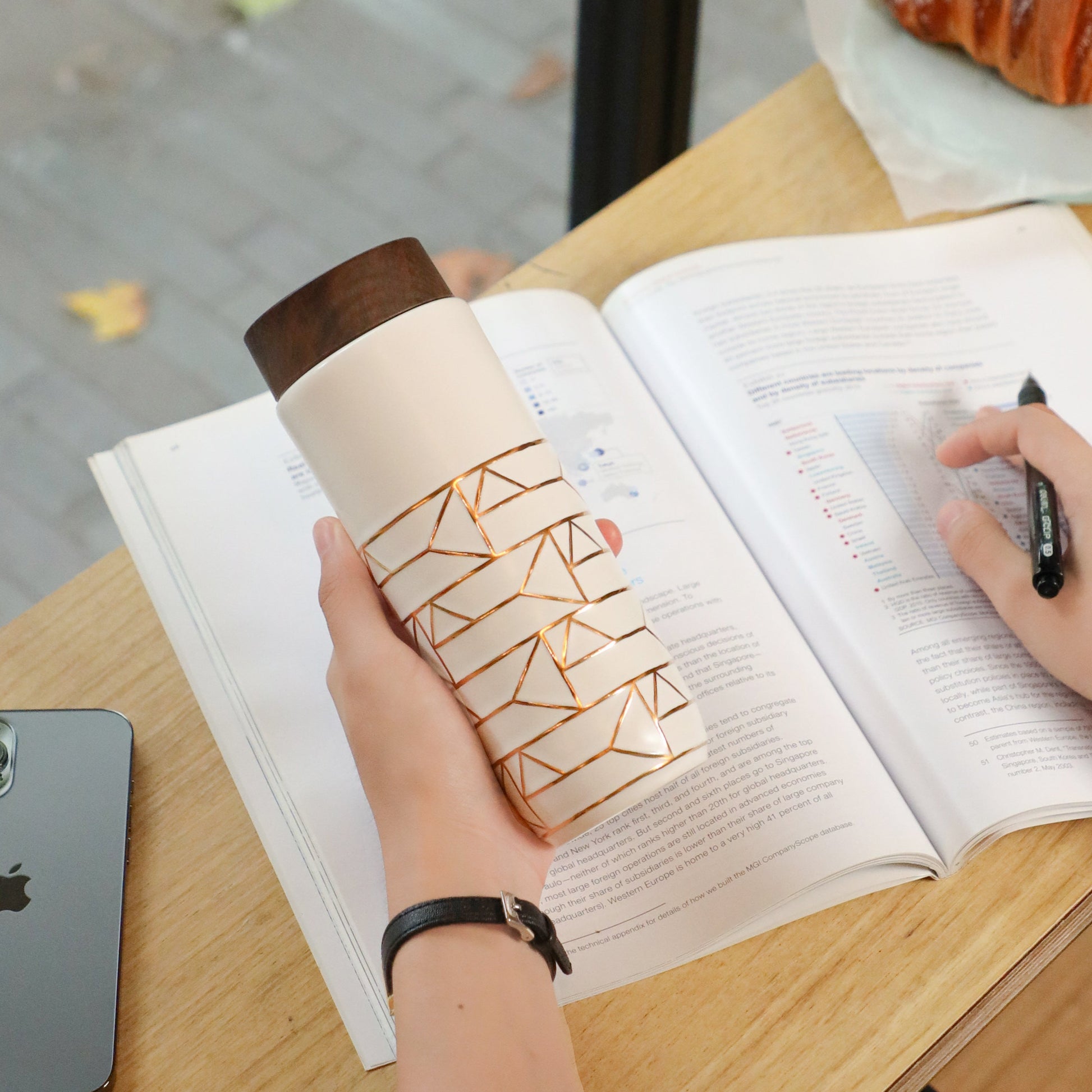 Distinct for its gold hand-painted design, the tumbler is also double wall heat-insulated to keep your drinks hot for up to 90 minutes.