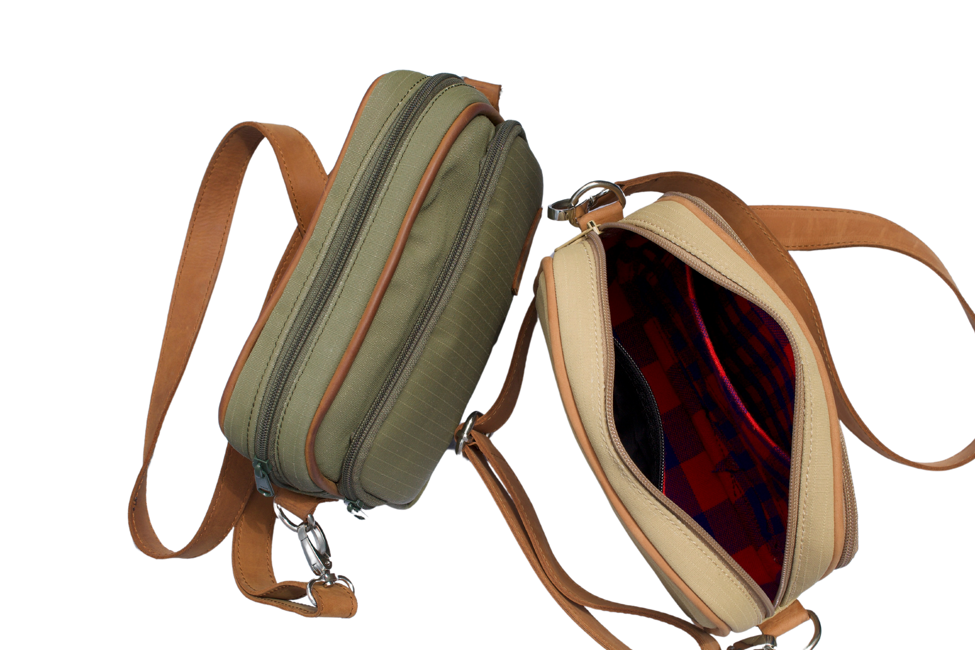 The Bum Bag is designed with versatility in mind! Crafted with our full-grain leather and ripstop canvas, this crossbody bag will be useful to carry your essentials while on Safari or on your commute to work. It is lined with Maasai Shuka and has two inner pockets and an outer zip.