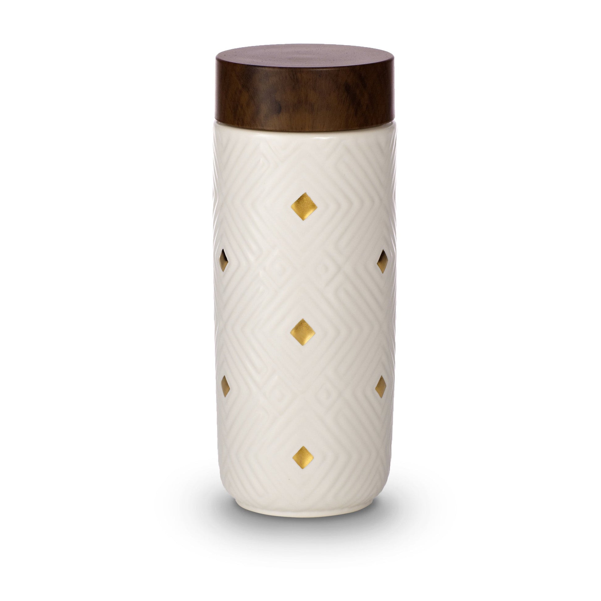Description: Miracles abound. They surround us every day, in buds that become flowers, caterpillars that become butterflies, and in natural springs that quench our daily thirst. We honor these natural miracles with this portable tumbler that encourages you to drink in their beauty. Technology: Tourmaline Anion - Patented Far infrared and negative ion Technology. The tourmaline lining of the tumbler heightens the flavor and freshness of any beverage. The tourmaline's charged negative ions add a pure taste, while neutralizing harsh chlorine and other impurities. Material: Ceramics Lids: ABS (walnut wood effect), Tritan TM and silicon Capacity: 350 ml / 12.3 oz Dimension: 2.75 x 2.75 x 7 Insulation: Double Wall Package: Minted Gift Box Care: Please hand wash for optimal cleaning results.