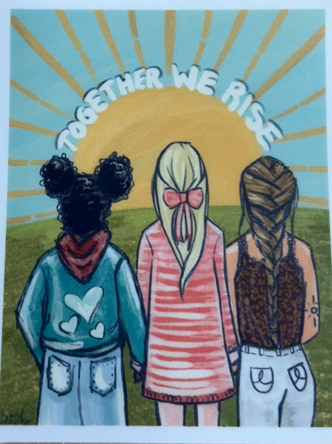 This cute, decorative sticker would look beautiful on a water bottle, back of a laptop, or on a car. With the purchase of the 'Together We Rise' sticker, you are able to physically carry around our message of hope with you wherever you go.