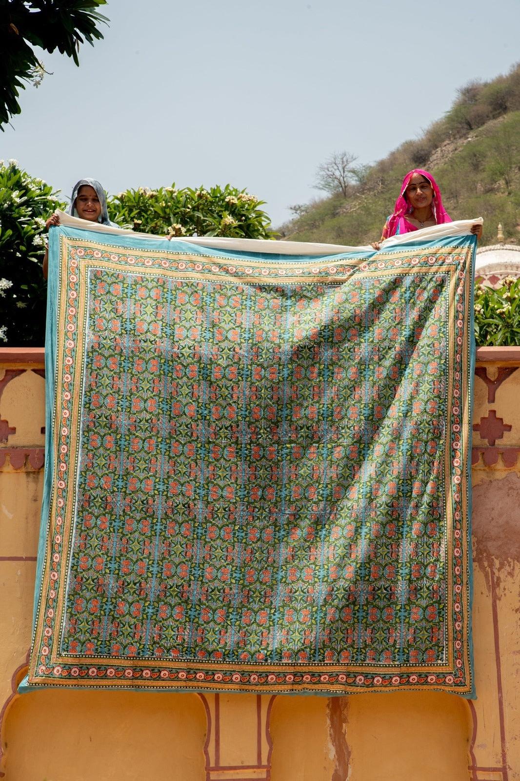 Each duvet cover is handmade, requiring attention from multiple artisans, including wood carvers, block printers, and dye specialists. The design is hand-pressed onto each duvet using hand-carved wooden blocks dipped in dyes. Our duvet covers are made in small batches. Due to the handcrafted nature of this item, expect slight variations in the appearance of each unique piece. - 100% Cotton - Button Closure - Reversible Design - Handmade in India - Ships from California - Queen Size: 92″ x 96″ | King Size: 96″ x 104″ | Shams Size: 26" x 26" - Machine wash on a gentle cycle and tumble dry or dry clean