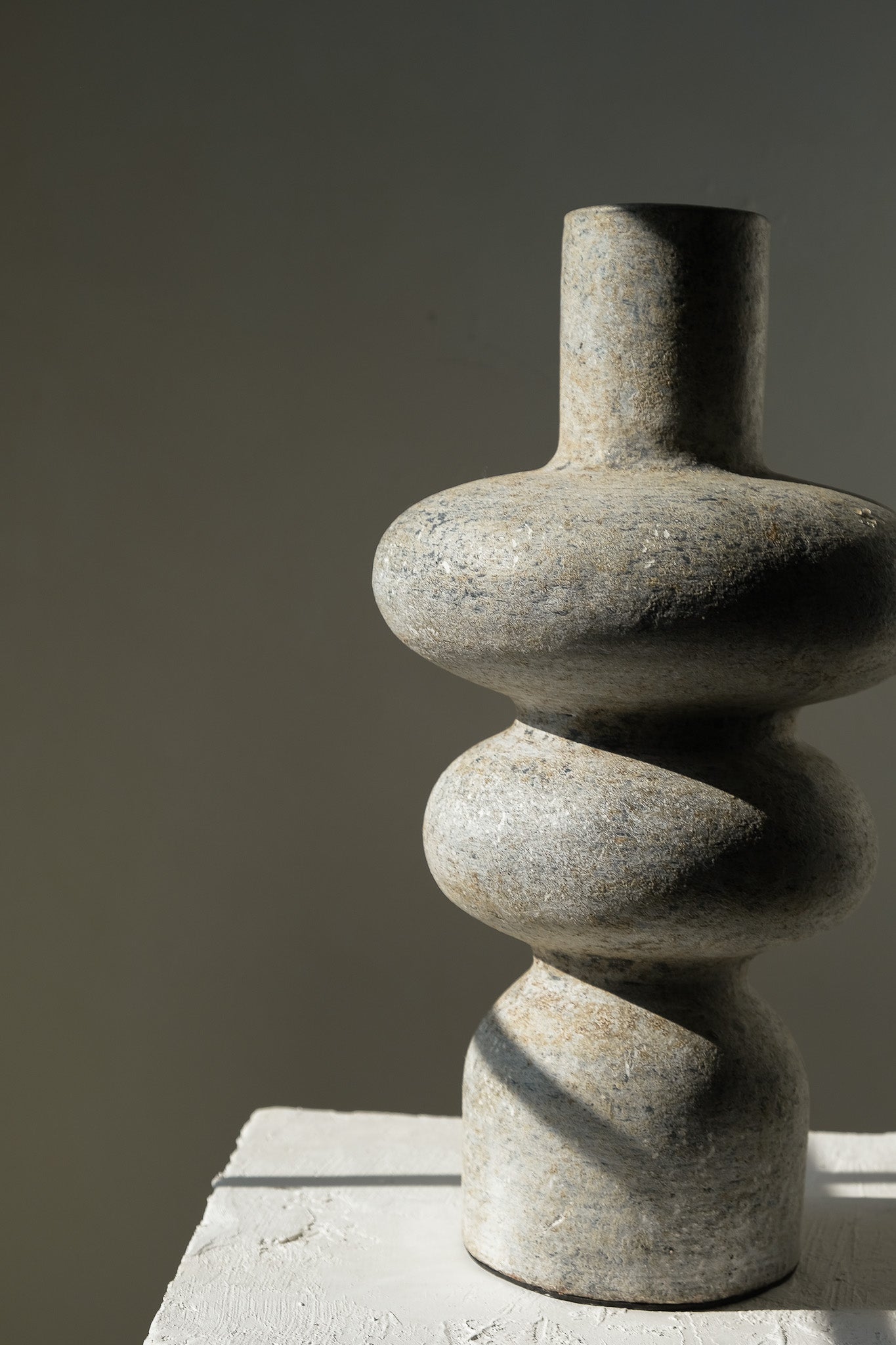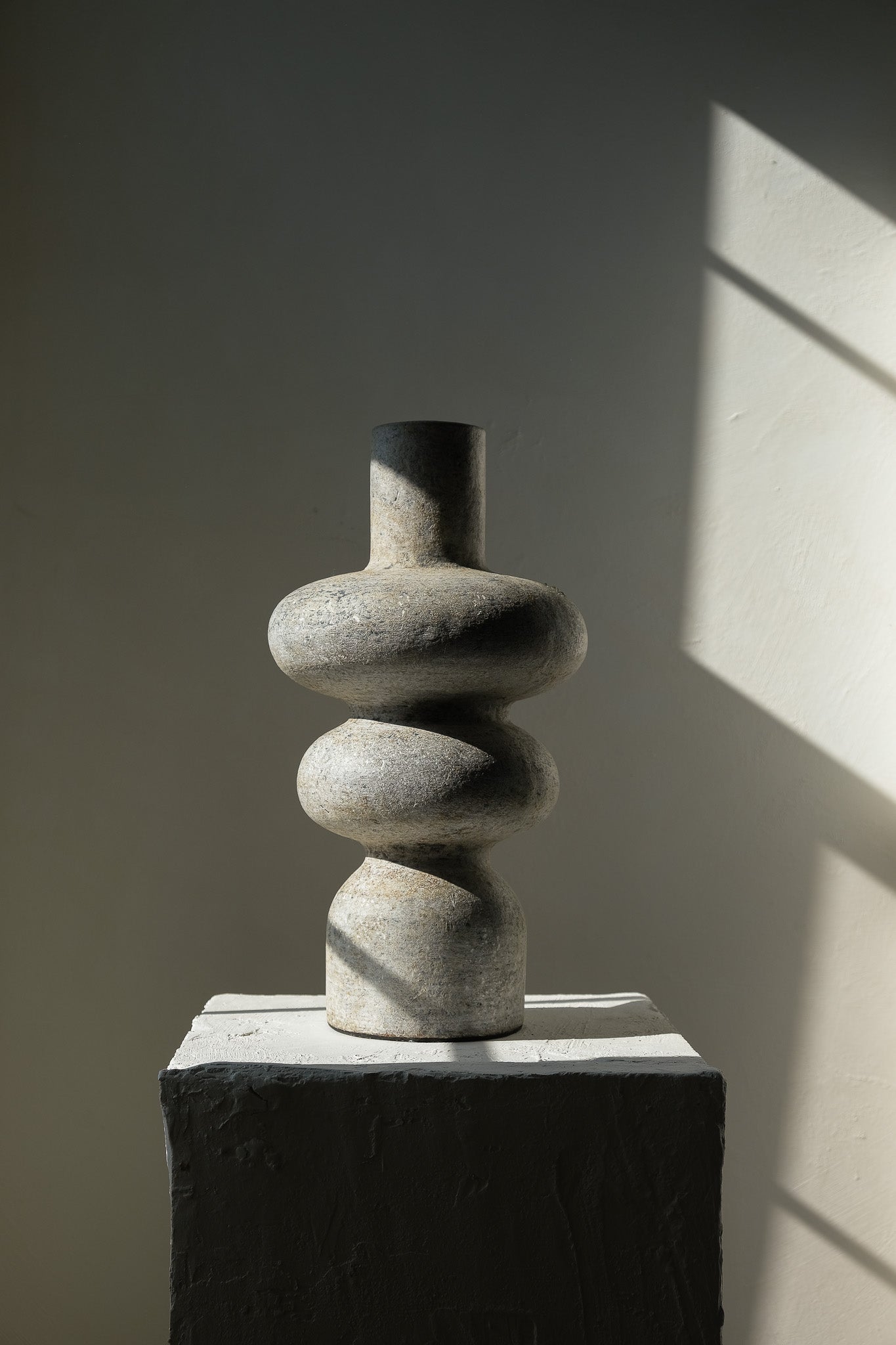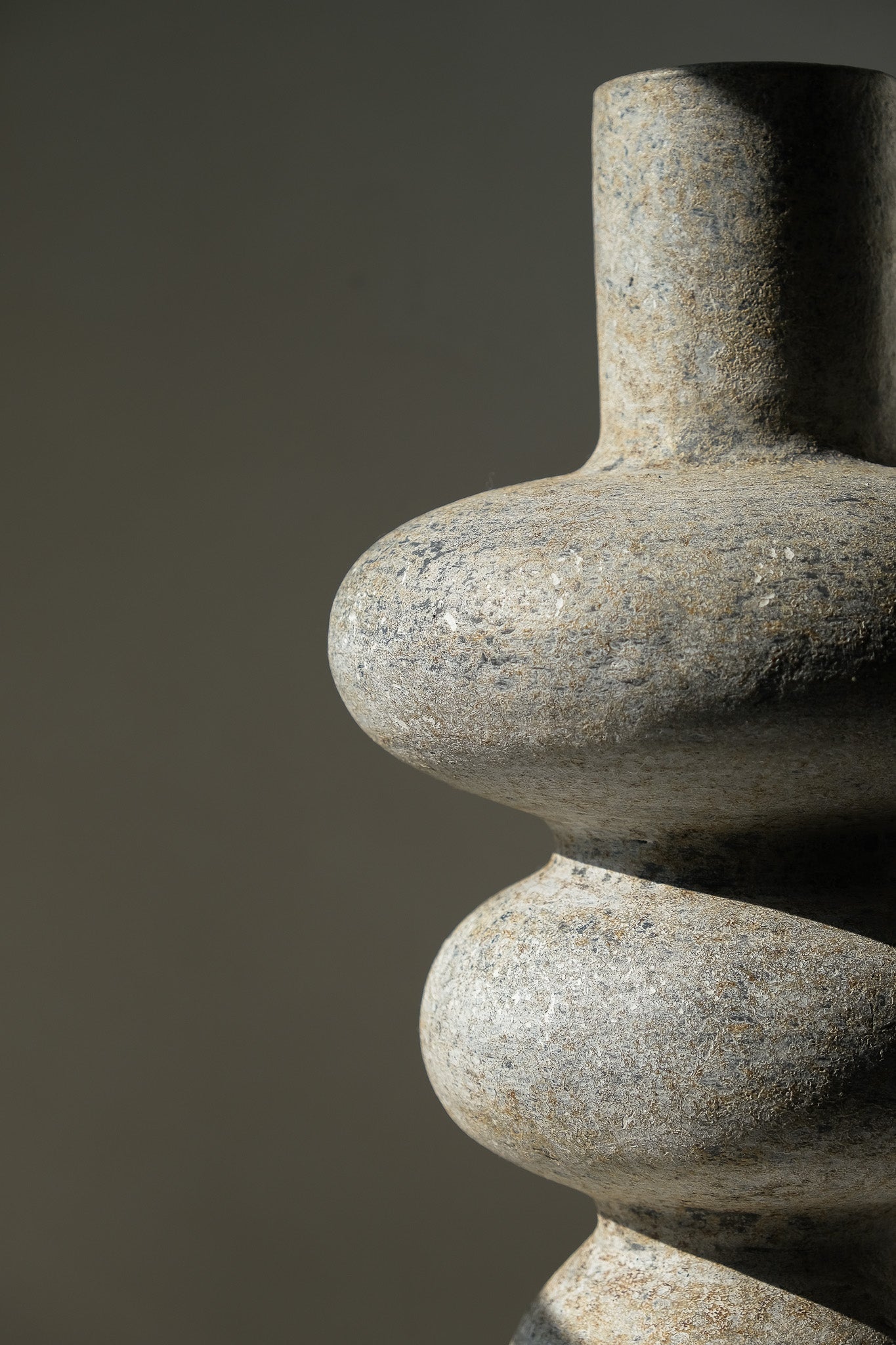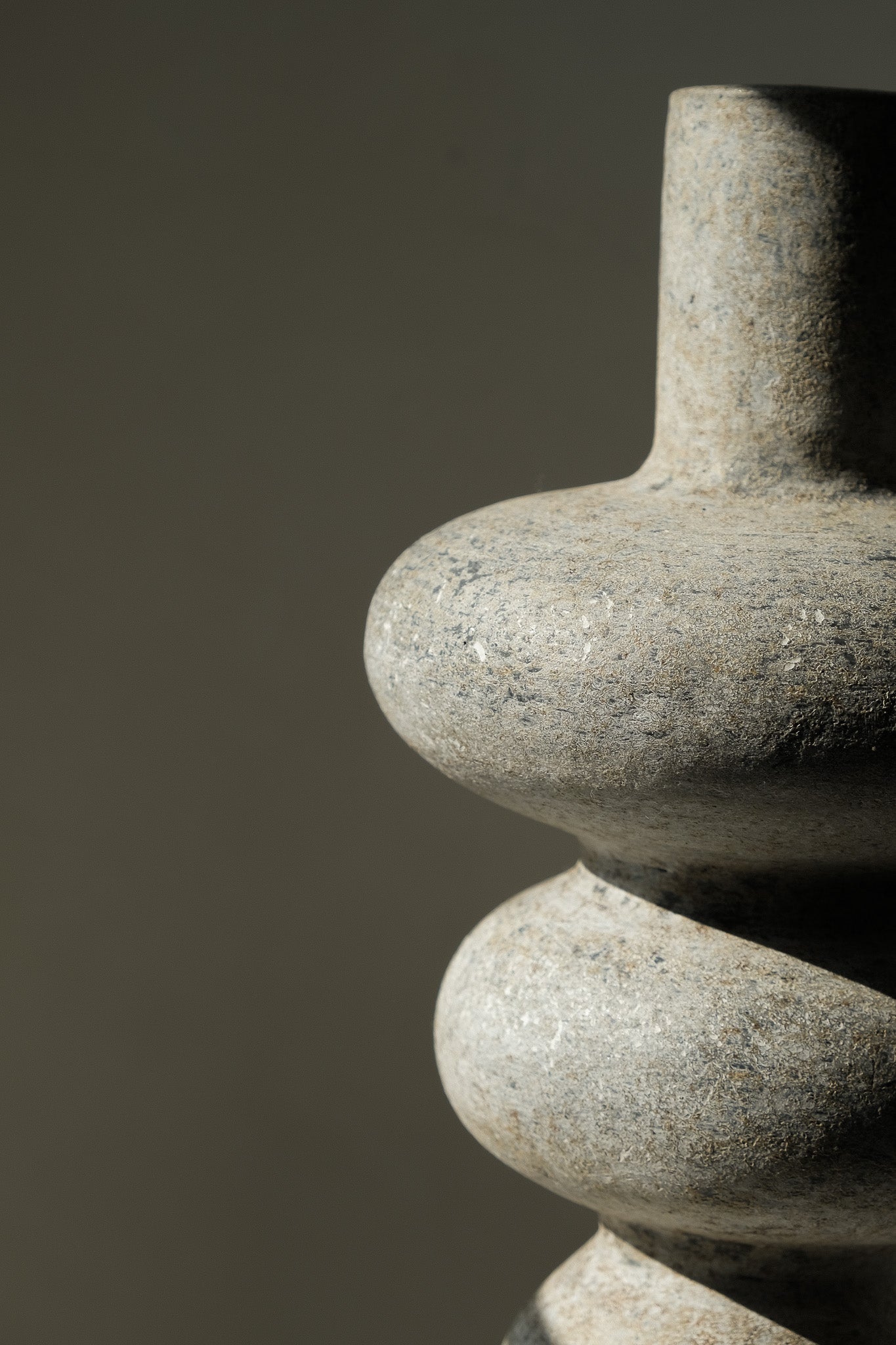 The Ulun vessel is a refined terracotta sculpture handmade by local Indonesian artisans. Crafted with techniques passed down through generations, the Ulun's distinctive structure is an ode to the elements and the artisan's ingenuity, and is inspired by structures of temples in Indonesia. Its dark grey hues and high quality finish make it a valuable addition to any home.