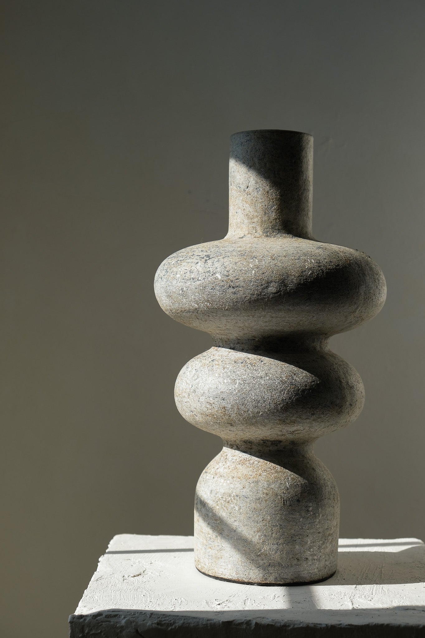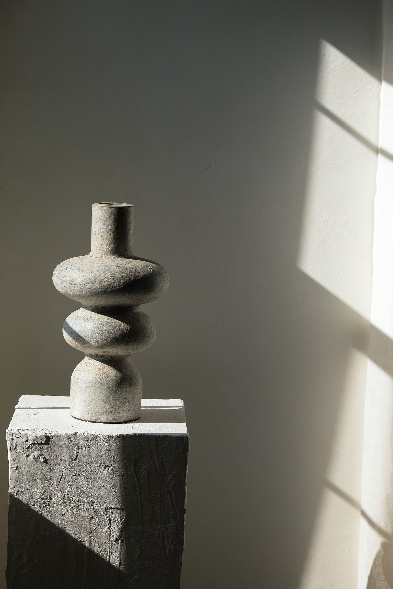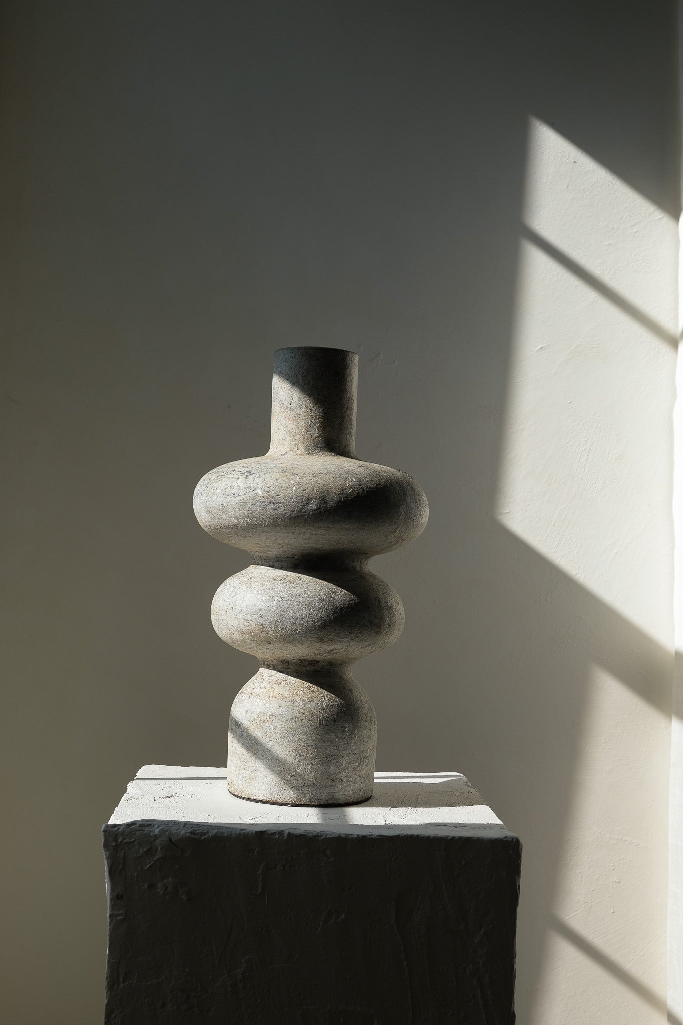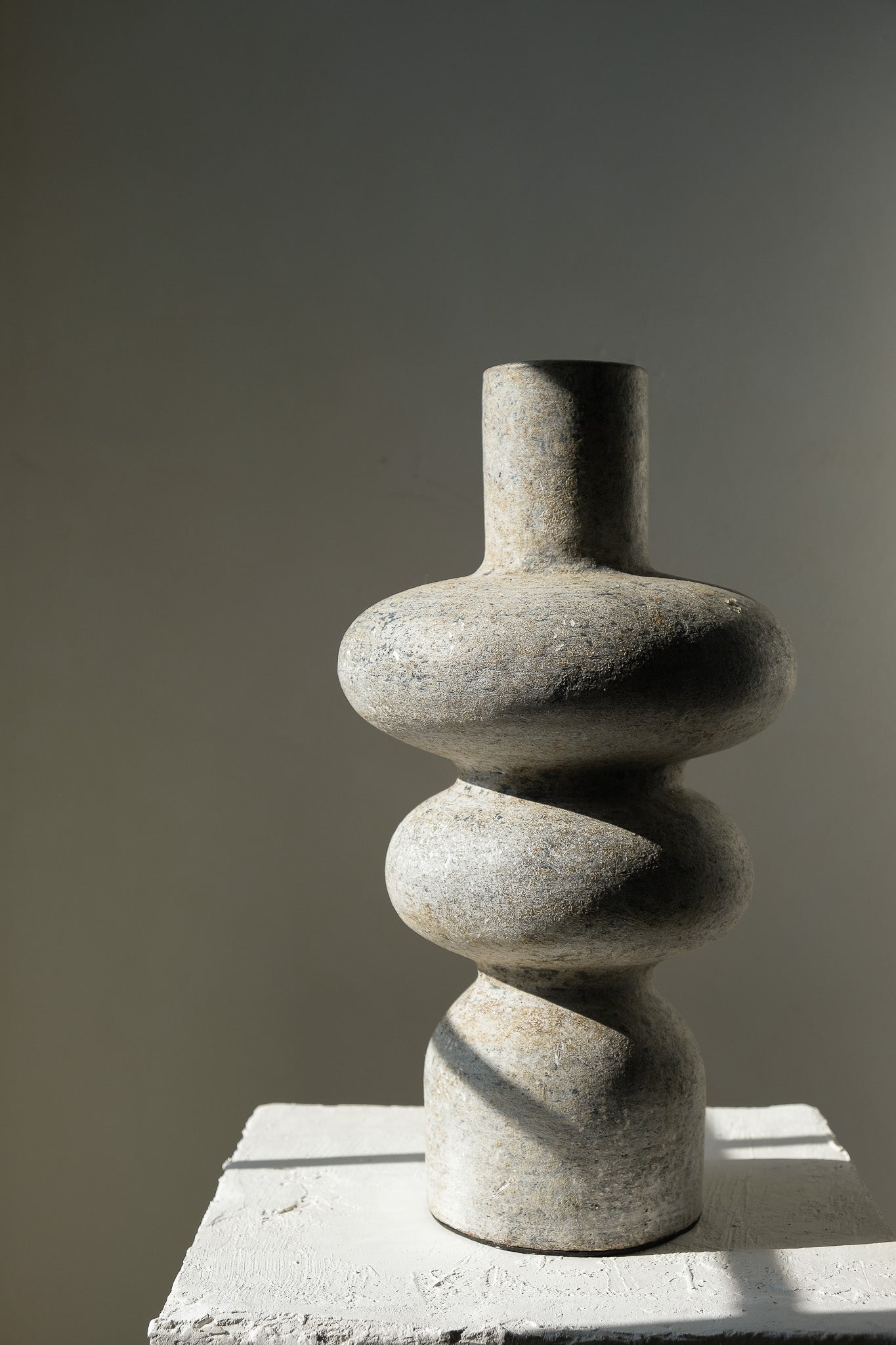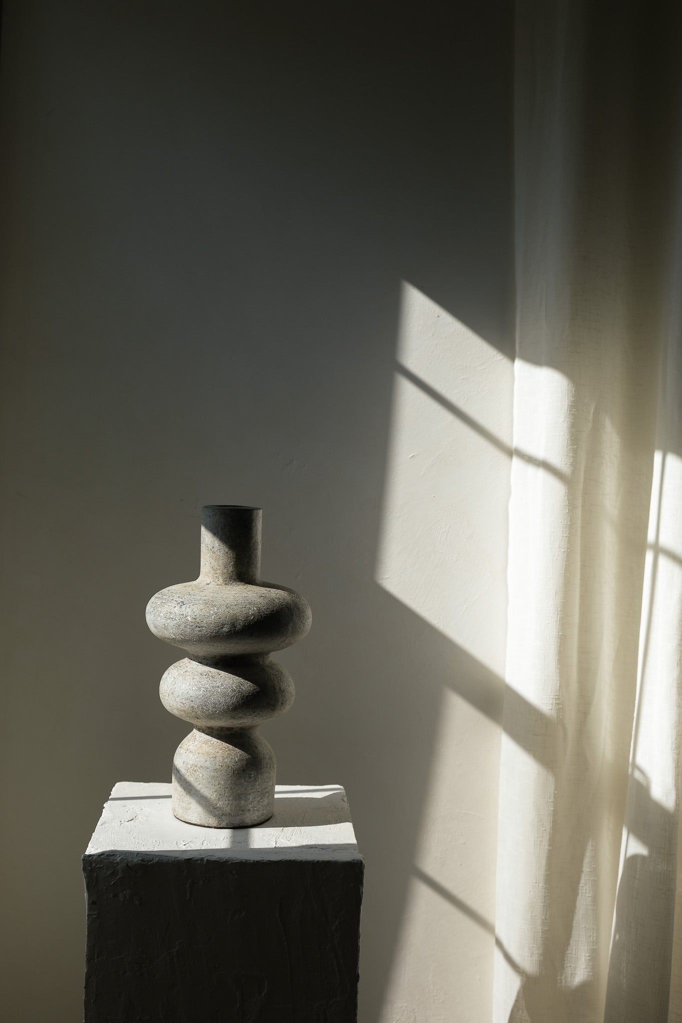 The Ulun vessel is a refined terracotta sculpture handmade by local Indonesian artisans. Crafted with techniques passed down through generations, the Ulun's distinctive structure is an ode to the elements and the artisan's ingenuity, and is inspired by structures of temples in Indonesia. Its dark grey hues and high quality finish make it a valuable addition to any home.