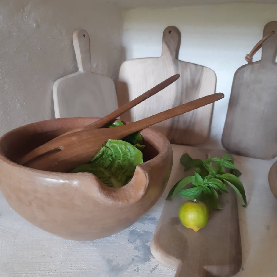 For cutting or serving, as a cheese board or tapas board, here are our cutting boards made of walnut wood. Handcrafted, these boards are perfect for the amateur cook as well as the professional chef. The wood comes from old walnut trees that no longer produce fruit and are cut down to be replaced by young trees. The fruit of the walnut tree brings in more income than the wood itself. It's the way to be sure that we use sustainable resources.