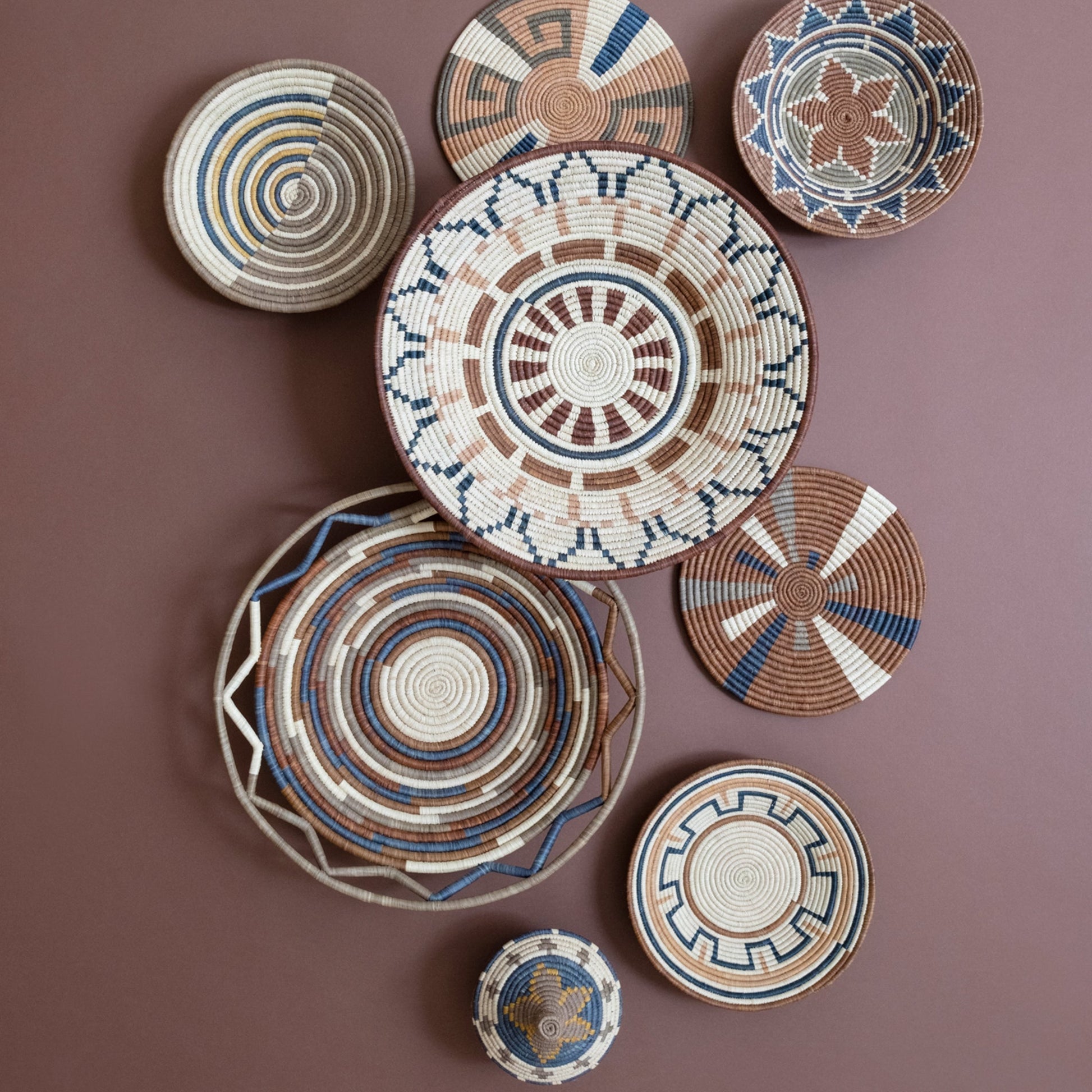 - The hand-dyed raffia is twisted and wrapped around coils of banana fibers, creating structure and intricate designs.
