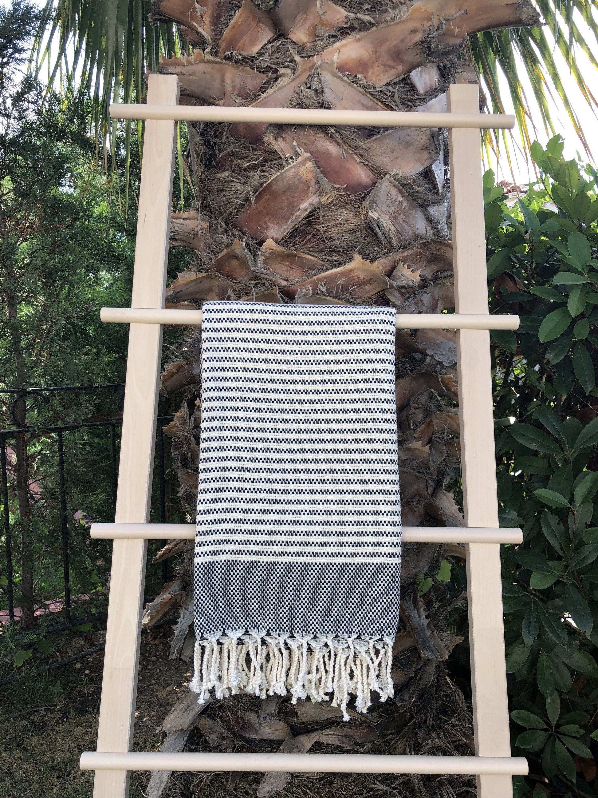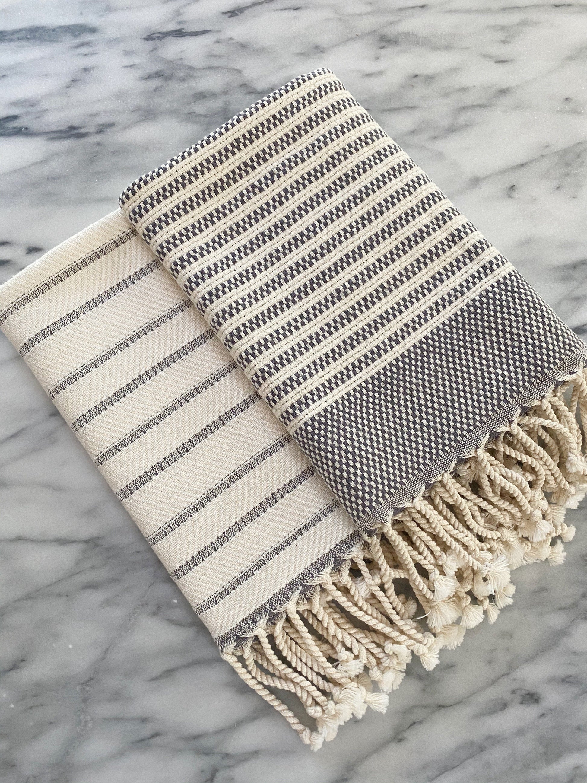 The Zipper Turkish Hand / Kitchen Towel is handwoven from the finest Turkish cotton fibers. It has black dots on natural cotton color. The fringes are all hand tied with exposed threads adding to the heirloom appeal of this Hand / Kitchen Towel. The Zipper Turkish Hand / Kitchen Towel is super absorbent and so soft to be used as a head towel as well. This truly is one of the most versatile pieces you could own. ______________________________________________ Materials: 100% Premium Turkish Cotton Size: 20"x40" Weight: 146g/5.15oz Care: Machine wash cold or up to 30℃ in gentle cycle. Avoid fabric softeners, dryer sheets and bleach. Air Dry or Tumble Dry low heat in gentle cycle. We recommend Air Dry as Turkish towels air dry quickly, so you may hang them to dry. Handcrafted by Olive and Linen ______________________________________________