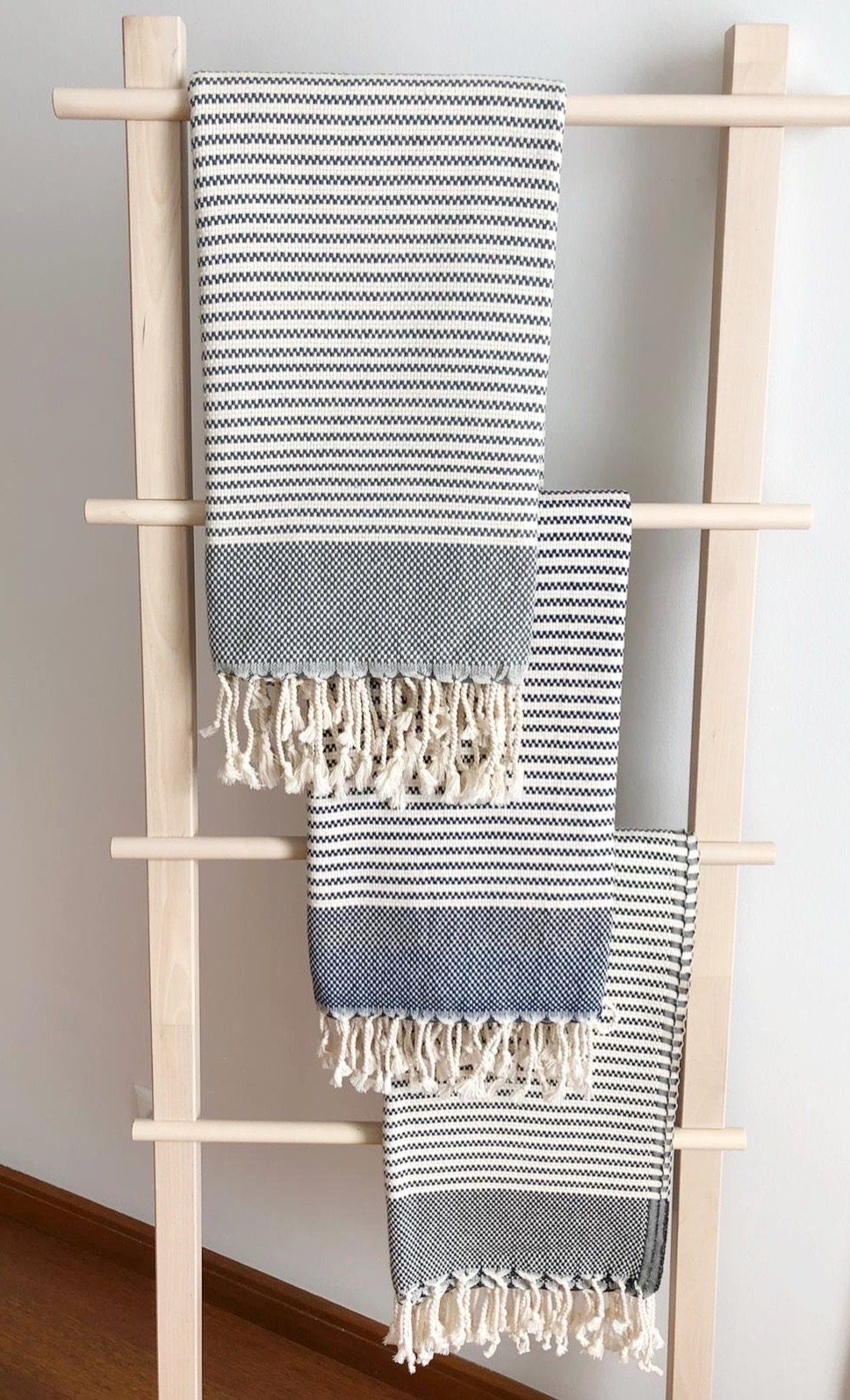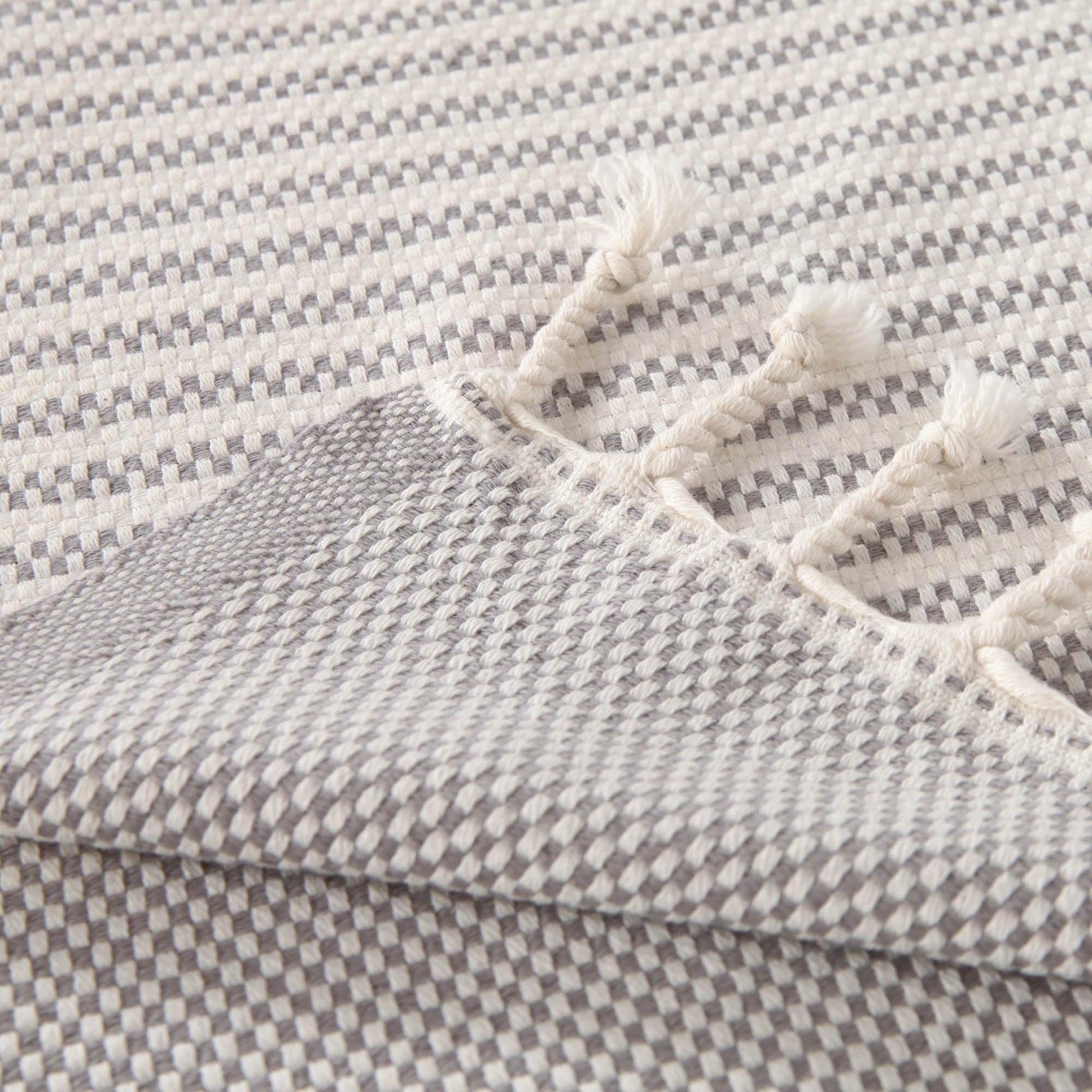 The Zipper Turkish Towel / Throw is handwoven from the finest Turkish cotton fibers. It has black dots on natural cotton color. The fringes are all hand tied with exposed threads adding to the heirloom appeal of this towel / throw. Its natural texture and elegant look would make it your favorite throw on your couch. The Zipper Turkish Towel / Throw is super absorbent and so soft to be used as a bath towel as well. This truly is one of the most versatile pieces you could own. ______________________________________________ Materials: 100% Premium Turkish Cotton Size: 36"x70" Weight: 432g/15.2oz Care: Machine wash cold or up to 30℃ in gentle cycle. Avoid fabric softeners, dryer sheets and bleach. Air Dry or Tumble Dry low heat in gentle cycle. We recommend Air Dry as Turkish towels air dry quickly, so you may hang them to dry. Handcrafted by Olive and Linen ______________________________________________