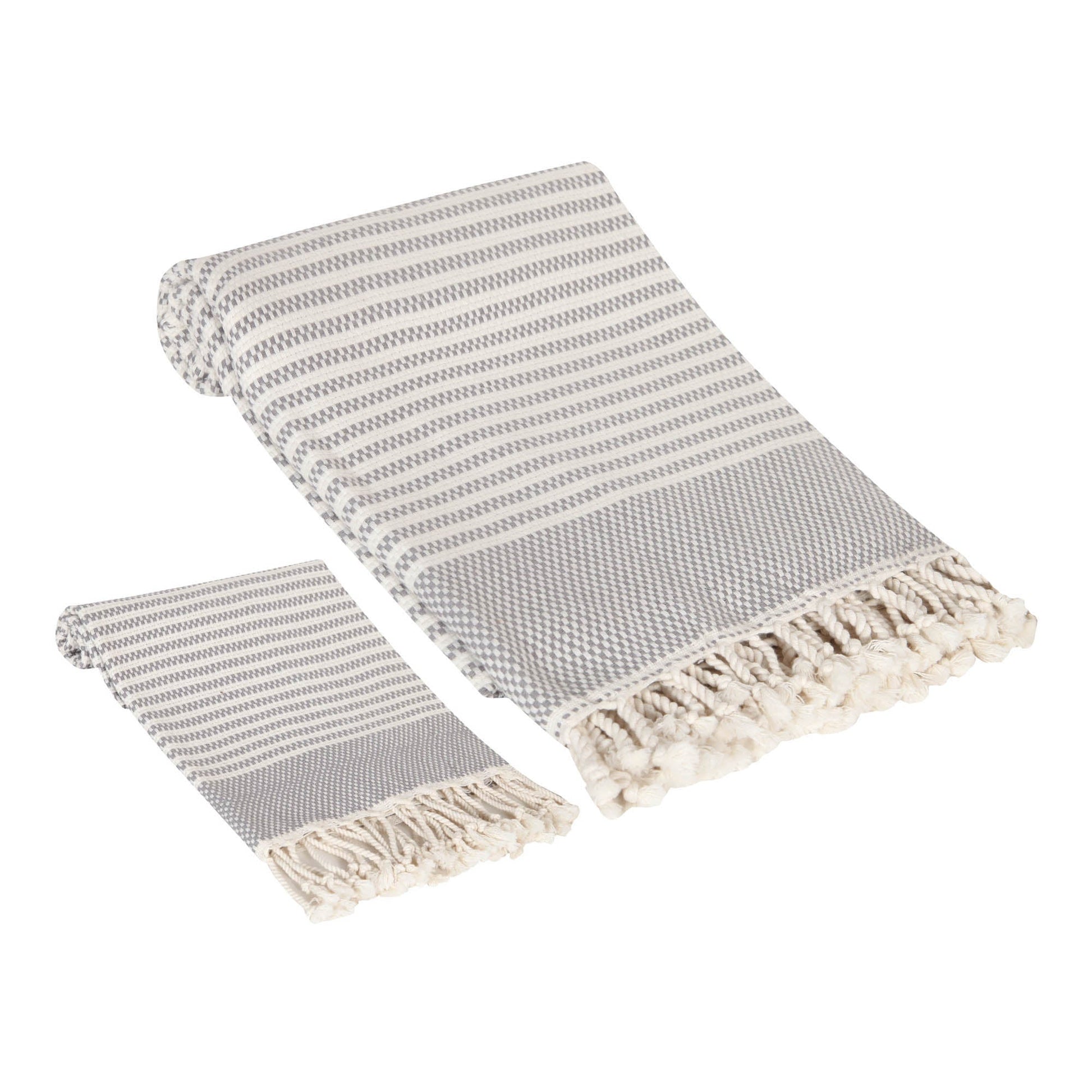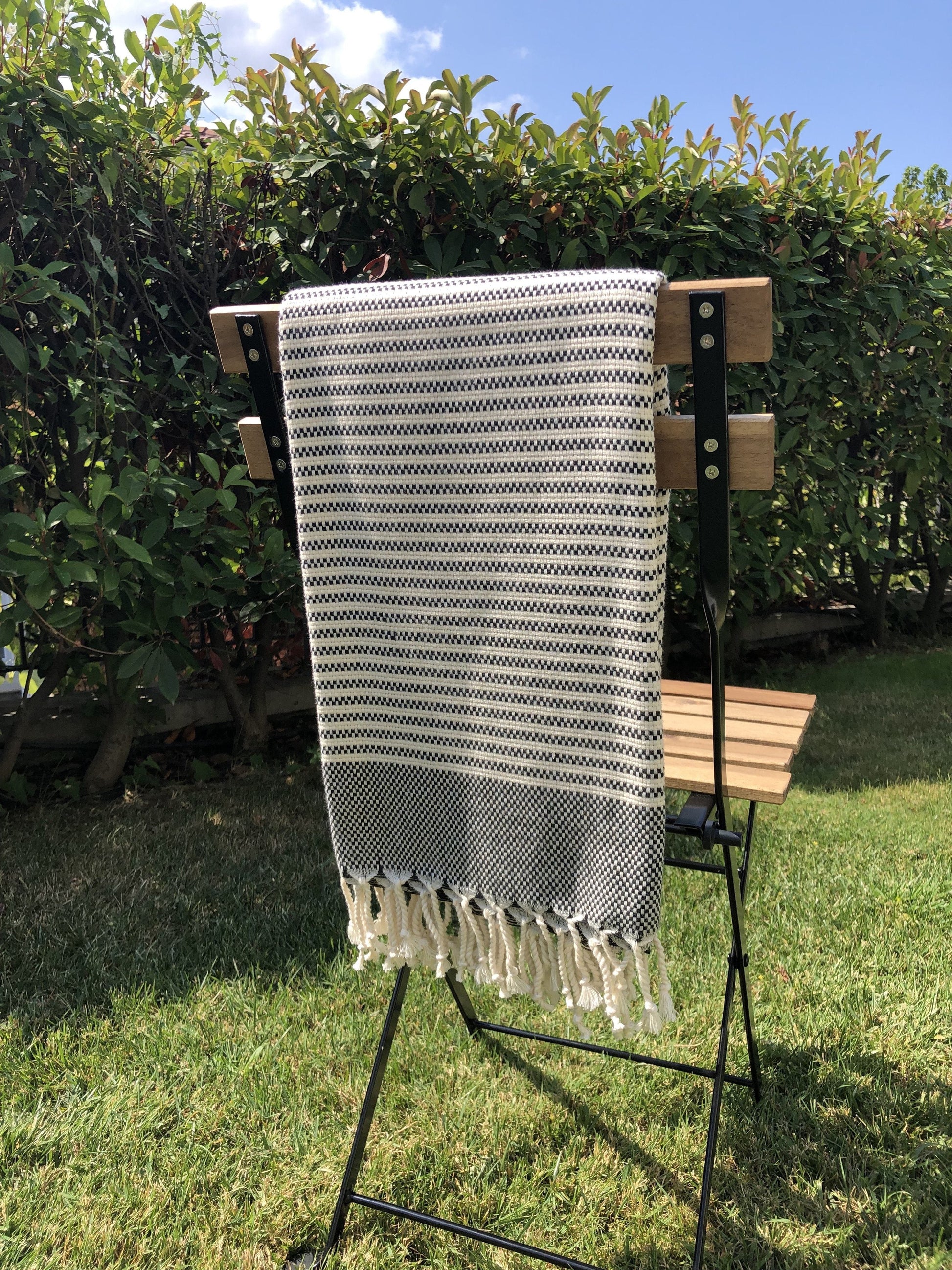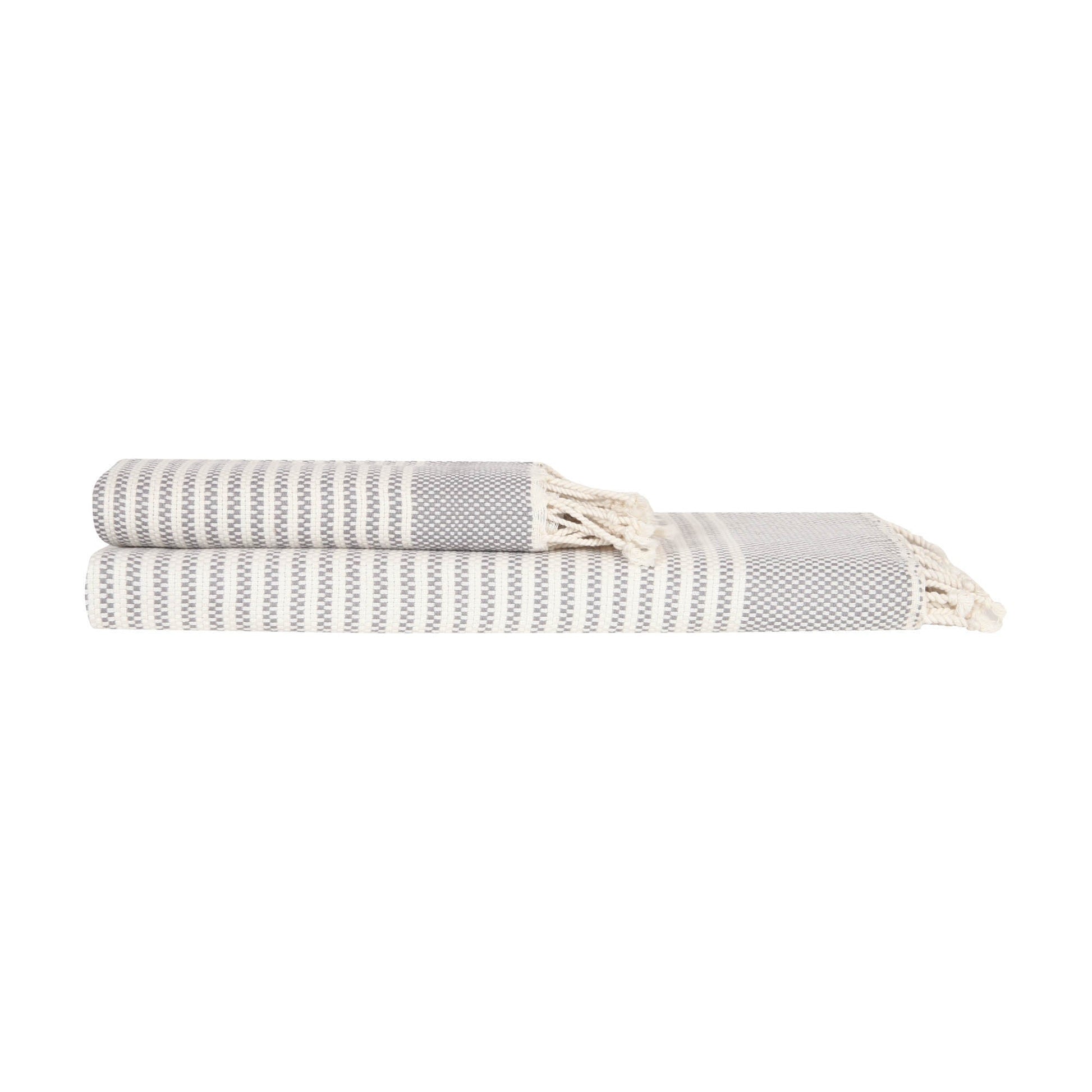 The Zipper Turkish Towel Set is handwoven from the finest Turkish cotton fibers. It has black dots on natural cotton color. The fringes are all hand tied with exposed threads adding to the heirloom appeal of this towel Set. Its natural texture and elegant look would make it your favorite throw on your couch. The Zipper Turkish Towel Set is super absorbent and so soft to be used as a bath towel as well. This truly is one of the most versatile pieces you could own.This set includes a full size bath sheet and a hand towel packaged individually. ______________________________________________ Materials: 100% Premium Turkish Cotton Size: 36"x70" and 20"x40" Weight: 432g/15.2oz and 146g/5.15oz Care: Machine wash cold or up to 30℃ in gentle cycle. Avoid fabric softeners, dryer sheets and bleach. Air Dry or Tumble Dry low heat in gentle cycle. We recommend Air Dry as Turkish towels air dry quickly, so you may hang them to dry. Fringes of Turkish Towels are handcrafted. They are very nice and durable but, sometimes may come untied. There is a simple process to fix untied fringes on a Turkish Towel. Learn how here⇒ How to Easily Fix Untied Fringes on Turkish Towels Handcrafted by Olive and Linen ______________________________________________